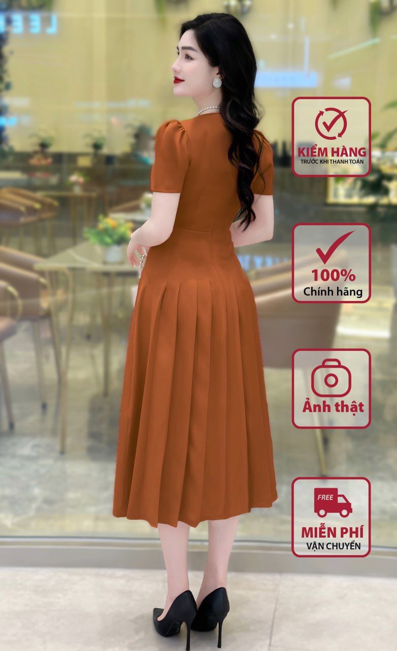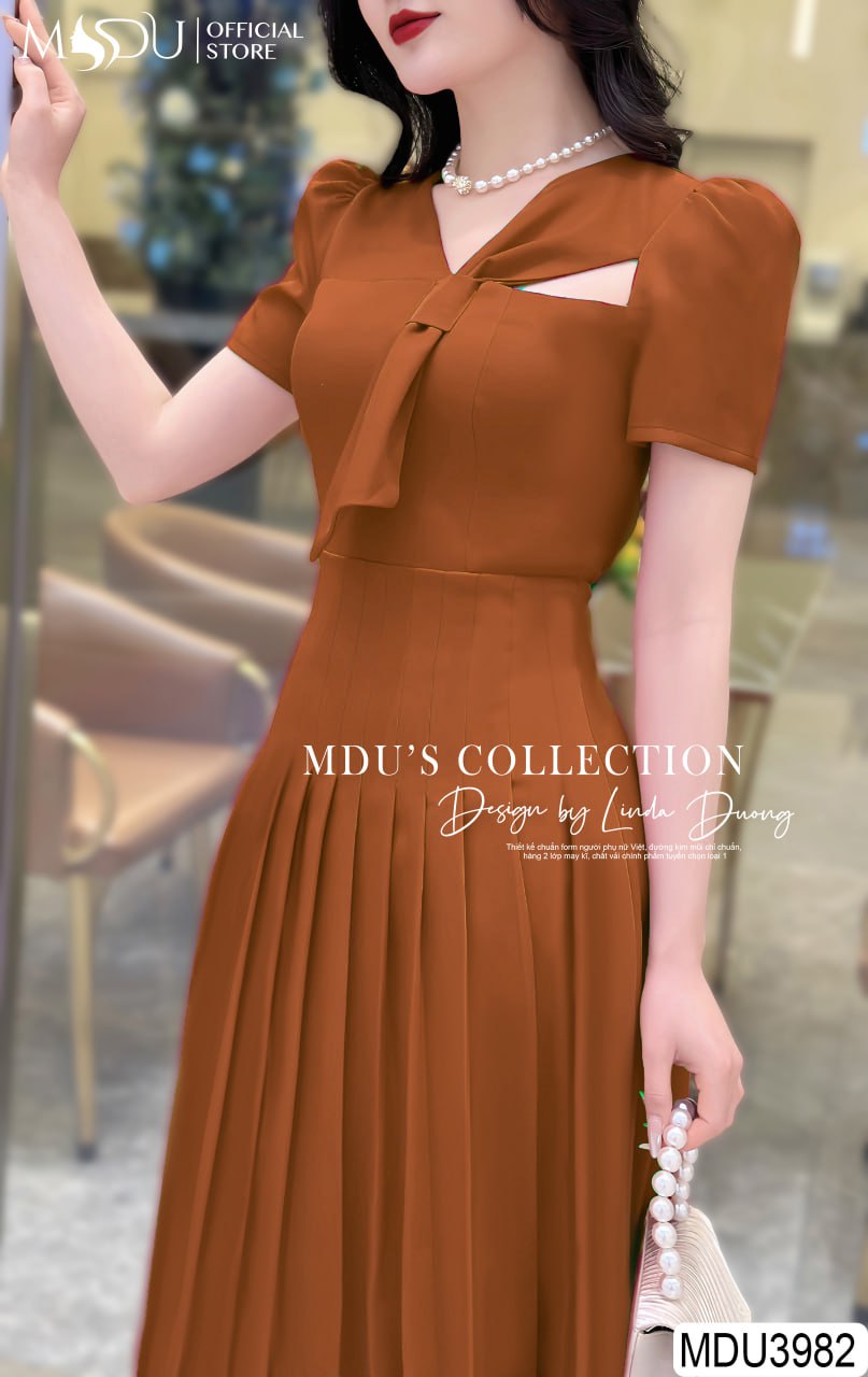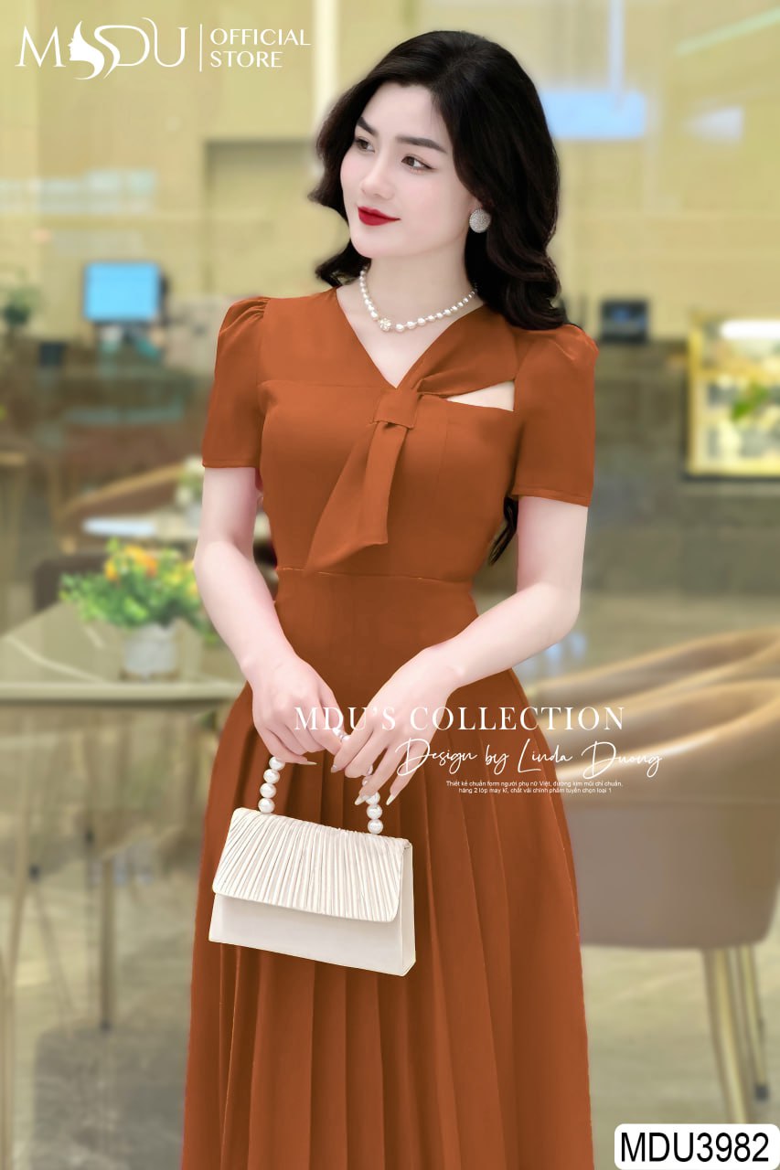 Váy Đầm Công Sở MDU3982 – Sự Kết Hợp Hoàn Hảo Giữa Màu Cam Đất và Thiết Kế Thanh Lịch