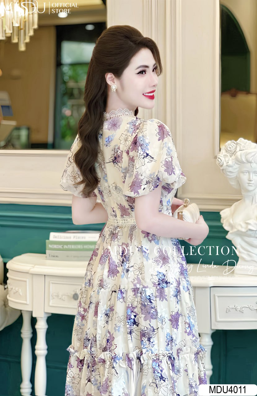 Điểm nhấn độc đáo của Váy MDU4011 chính là màu hoa bắt mắt, vừa trẻ trung vừa tạo nên nét nổi bật cho người mặc. Thiết kế mang phong cách hiện đại nhưng vẫn giữ được nét cổ điển, thích hợp cho nhiều dịp từ sự kiện cho đến dạo phố. Phom dáng nhẹ nhàng, thoải mái nhưng không kém phần tôn dáng, giúp người mặc tự tin thể hiện phong cách.