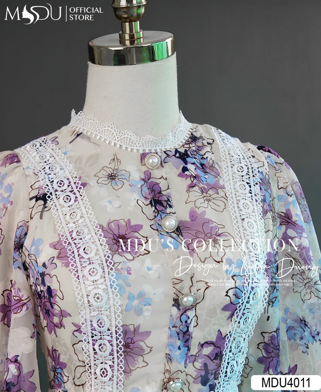 Váy Thiết Kế MDU4011 – Sự Kết Hợp Hoàn Hảo Của Chất Tơ Ép Phối Ren Cao Cấp Và Màu Hoa Bắt Mắt