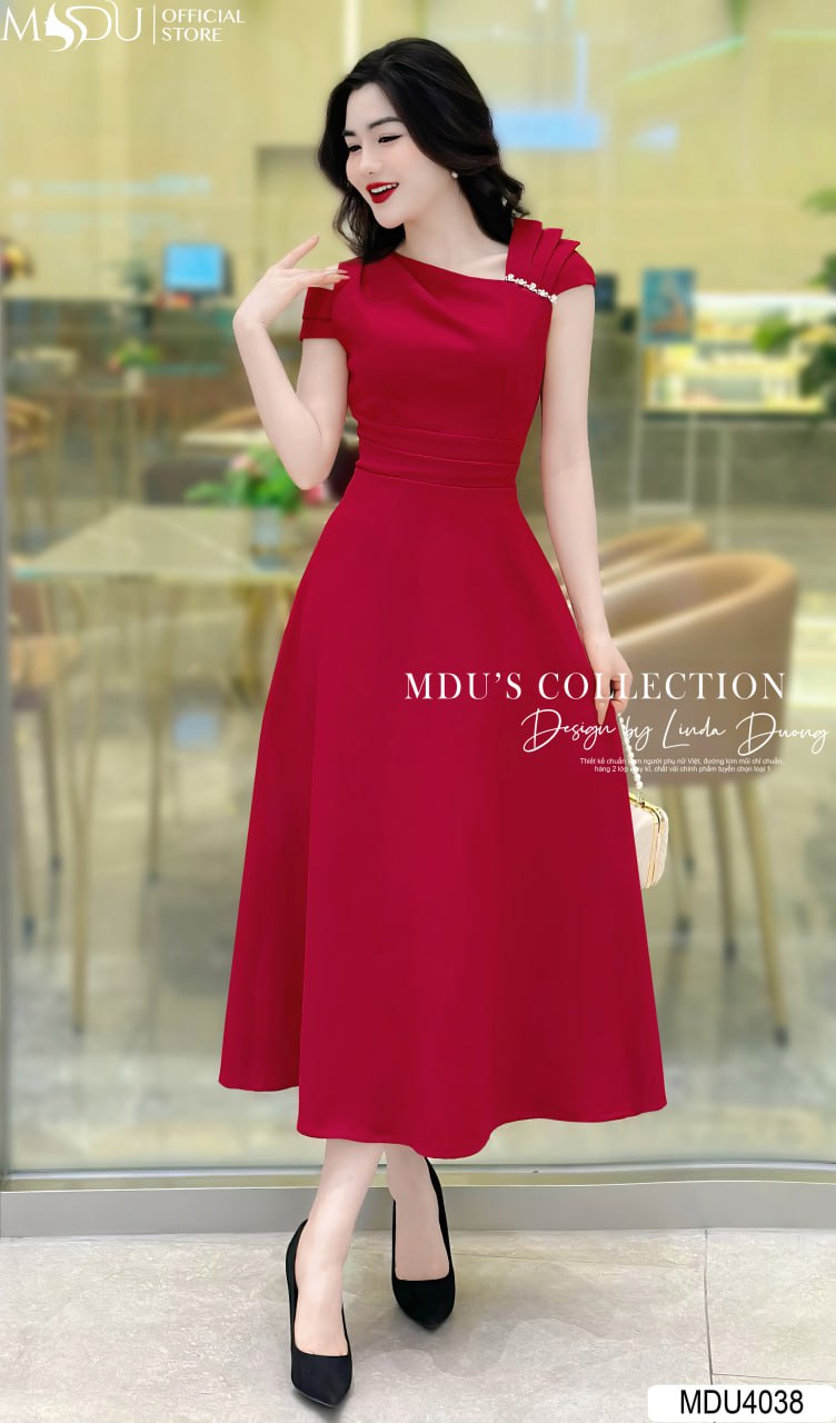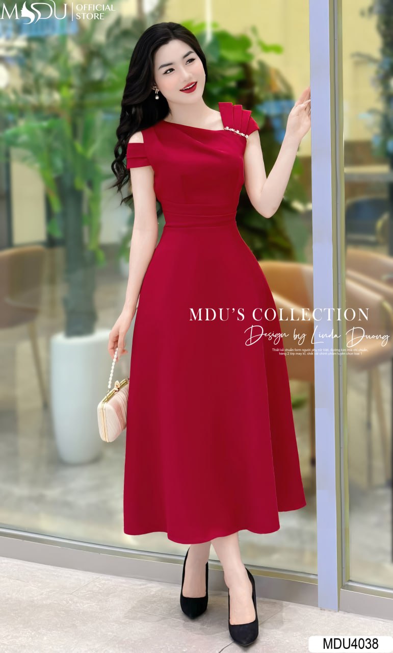 MDU4038 nổi bật với thiết kế cổ chéo, tôn lên vẻ đẹp thanh lịch và quyến rũ của người mặc. Tay váy cách điệu cùng viền dây ngọc đính trực tiếp trên váy tạo điểm nhấn tinh tế và sang trọng. Chiếc váy này không chỉ thích hợp cho các buổi tiệc mà còn phù hợp khi đi công sở hay dạo phố, đảm bảo tính ứng dụng cao và không bao giờ lỗi mốt.