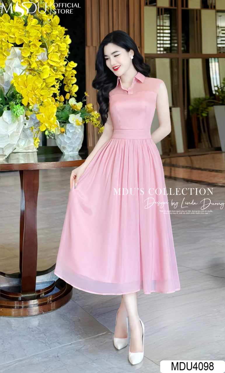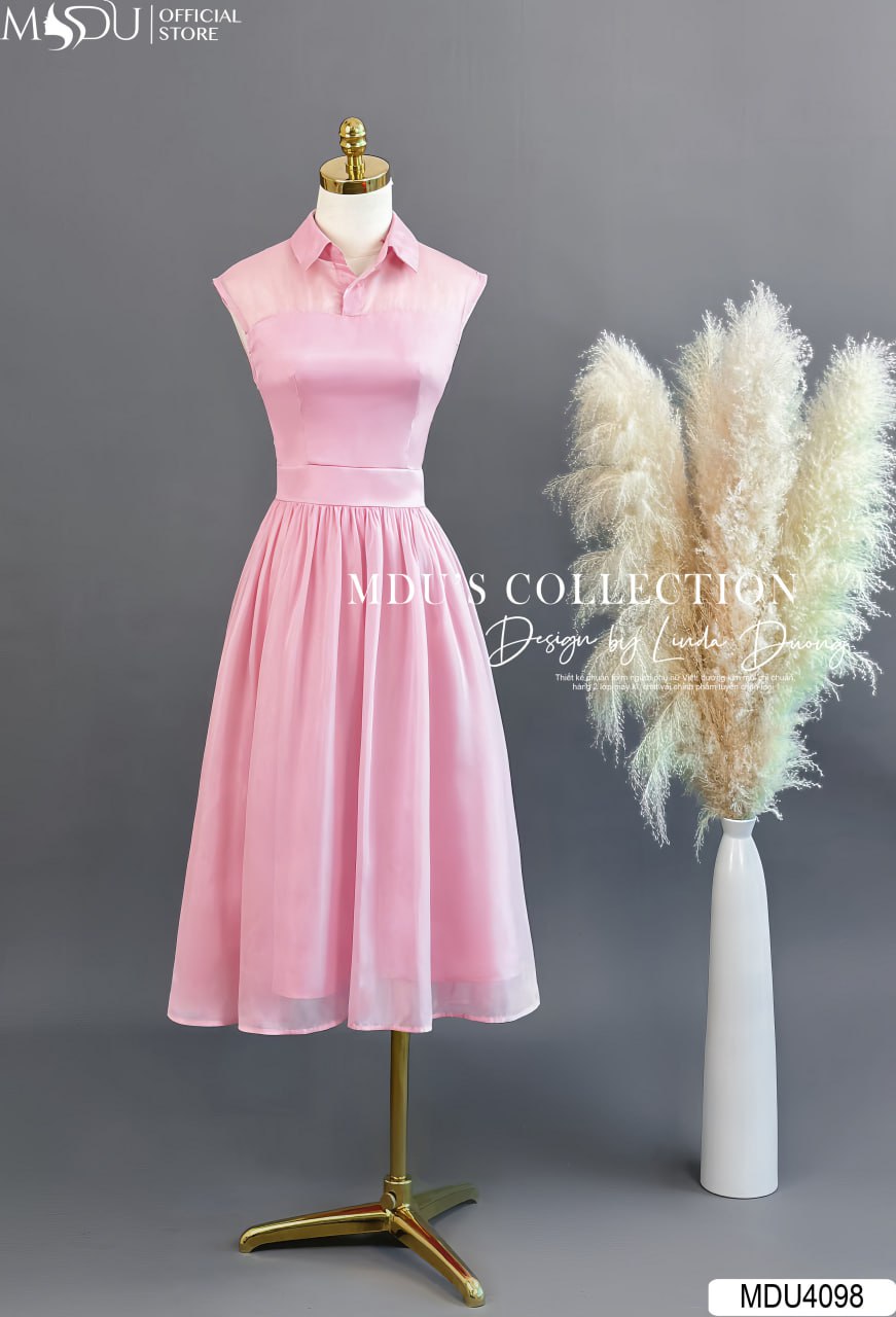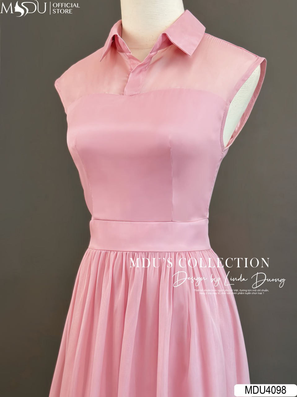 Váy Thiết Kế MDU4098 – Sự Kết Hợp Hoàn Hảo Giữa Màu Hồng Nhạt Duyên Dáng Và Chất Liệu Tơ Óng Chính Phẩm Cao Cấp