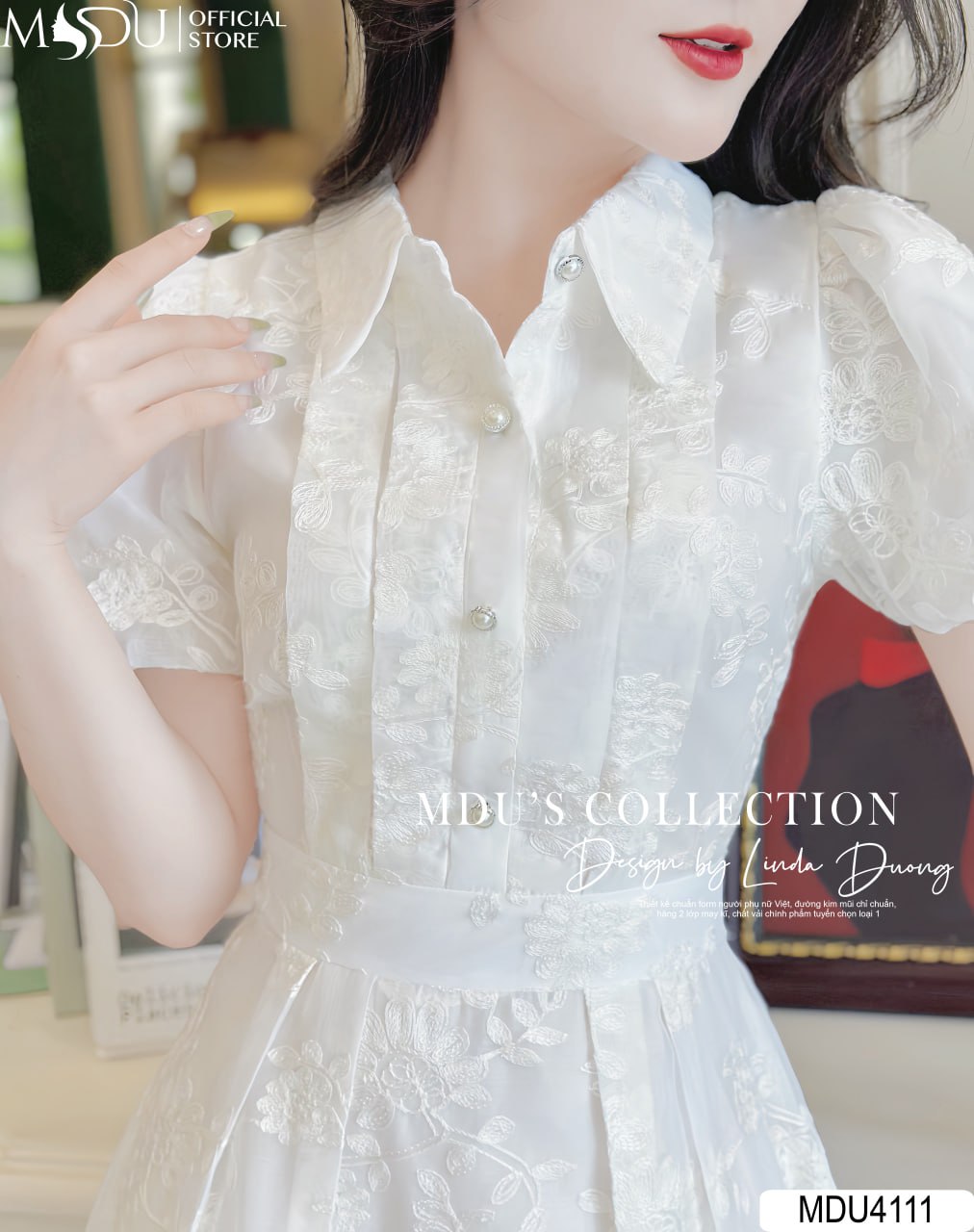 MDU Fashion, một trong những hãng thiết kế thời trang hàng đầu tại Việt Nam, luôn tự hào mang đến những sản phẩm thời trang chất lượng và tinh tế cho phái đẹp. Trong bộ sưu tập mới nhất, váy đầm công sở MDU4111 với tông trắng và họa tiết hoa thêu trên nền tơ hoa cao cấp chắc chắn sẽ là sự lựa chọn hoàn hảo cho các quý cô công sở yêu thích sự thanh lịch và quý phái.