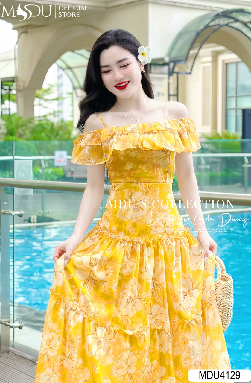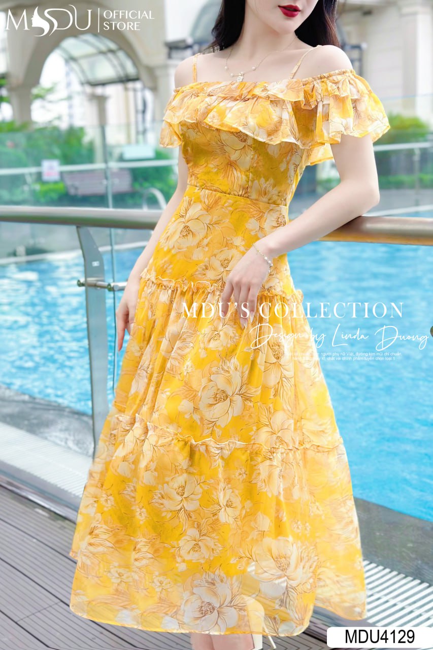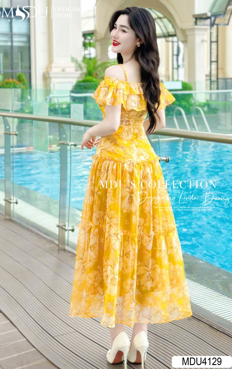 Với gam màu vàng sang trọng và thiết kế trễ vai 2 dây, váy MDU4129 tạo nên vẻ đẹp cuốn hút khó có thể dời mắt. Dáng váy dài mang lại sự thướt tha, thanh lịch, thích hợp cho nhiều dịp như đi tiệc, dạo phố hay thậm chí là đi công sở. Váy được bọc khóa và giấu đường may cẩn thận, mang lại vẻ hoàn hảo trong từng chi tiết.