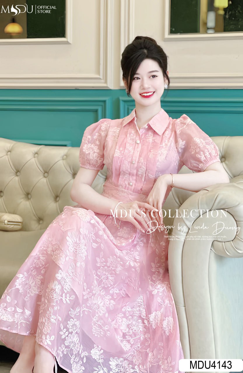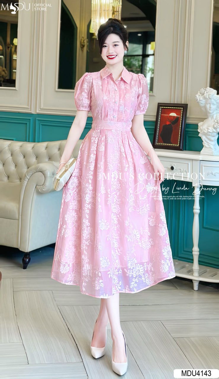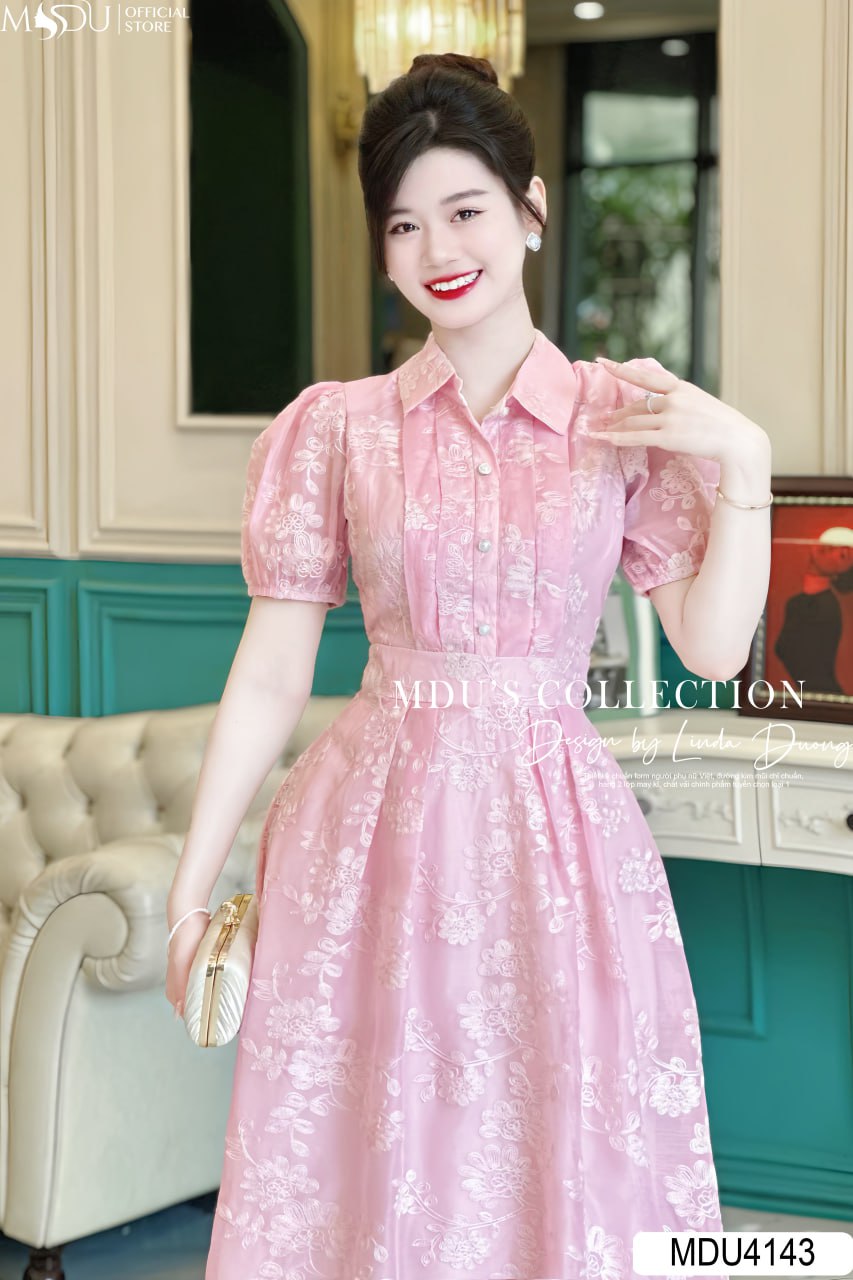 Váy Đầm Công Sở MDU4143 – Sơ Mi Thanh Lịch, Gam Hồng Pastel Phối Hoạ Tiết Bắt Mắt
