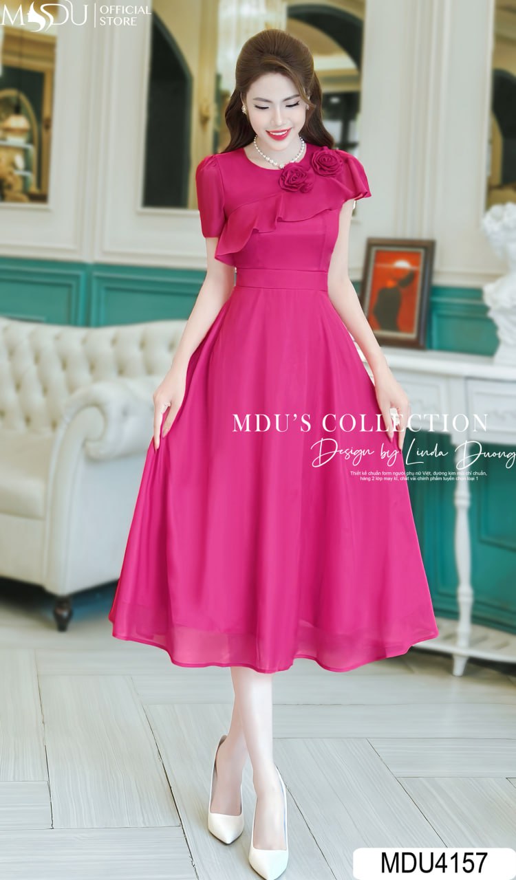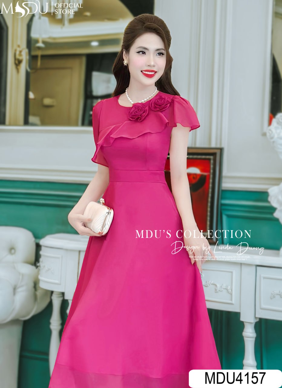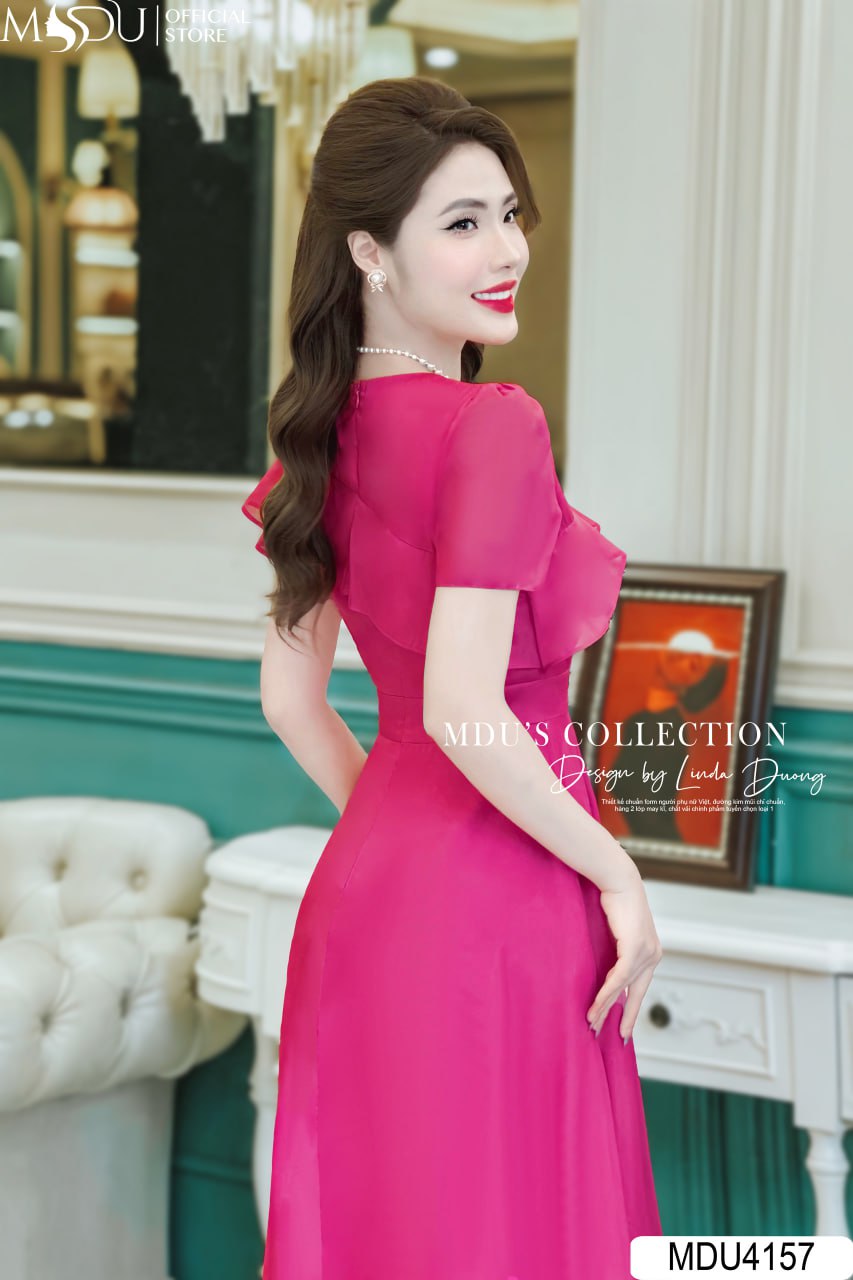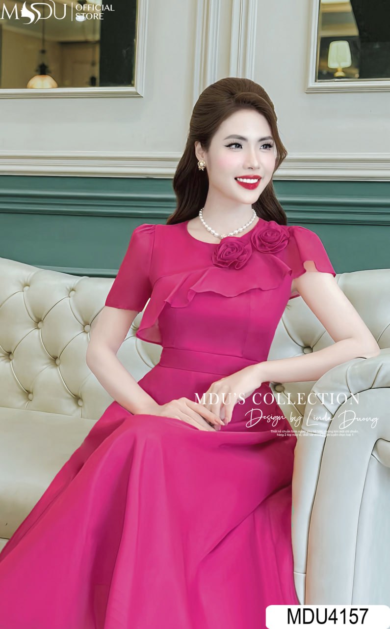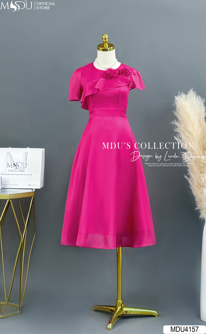 Váy Thiết Kế MDU4157 – Vẻ Đẹp Nổi Bật Với Chất Liệu Tơ Óng Hàn Màu Hồng Sen