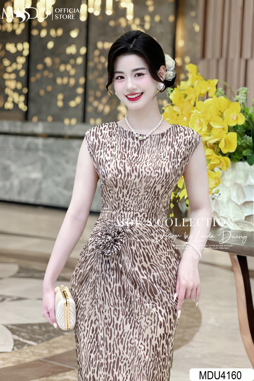 Váy dự tiệc MDU4160 được làm từ chất liệu tơ Hàn cao cấp, nổi bật với độ mềm mại và thoáng mát. Chất liệu này không chỉ giúp người mặc cảm thấy thoải mái mà còn giữ form váy hoàn hảo, tạo nên vẻ ngoài sang trọng và cuốn hút. Màu nâu kết hợp với họa tiết da báo bắt mắt, tạo nên sự mạnh mẽ và cá tính cho người mặc.