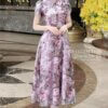 Váy MDU4166 mang đến sự kết hợp giữa phong cách cổ điển và hiện đại với chi tiết cổ áo hình Peter Pan nhẹ nhàng và tay áo phồng, tạo nên sự nữ tính, thanh lịch. Phần eo được thiết kế ôm sát, tạo đường cong quyến rũ, giúp tôn lên vóc dáng người mặc. Điểm nhấn đặc biệt là họa tiết hoa văn tinh tế, làm tăng thêm vẻ duyên dáng và sang trọng cho tổng thể chiếc váy.