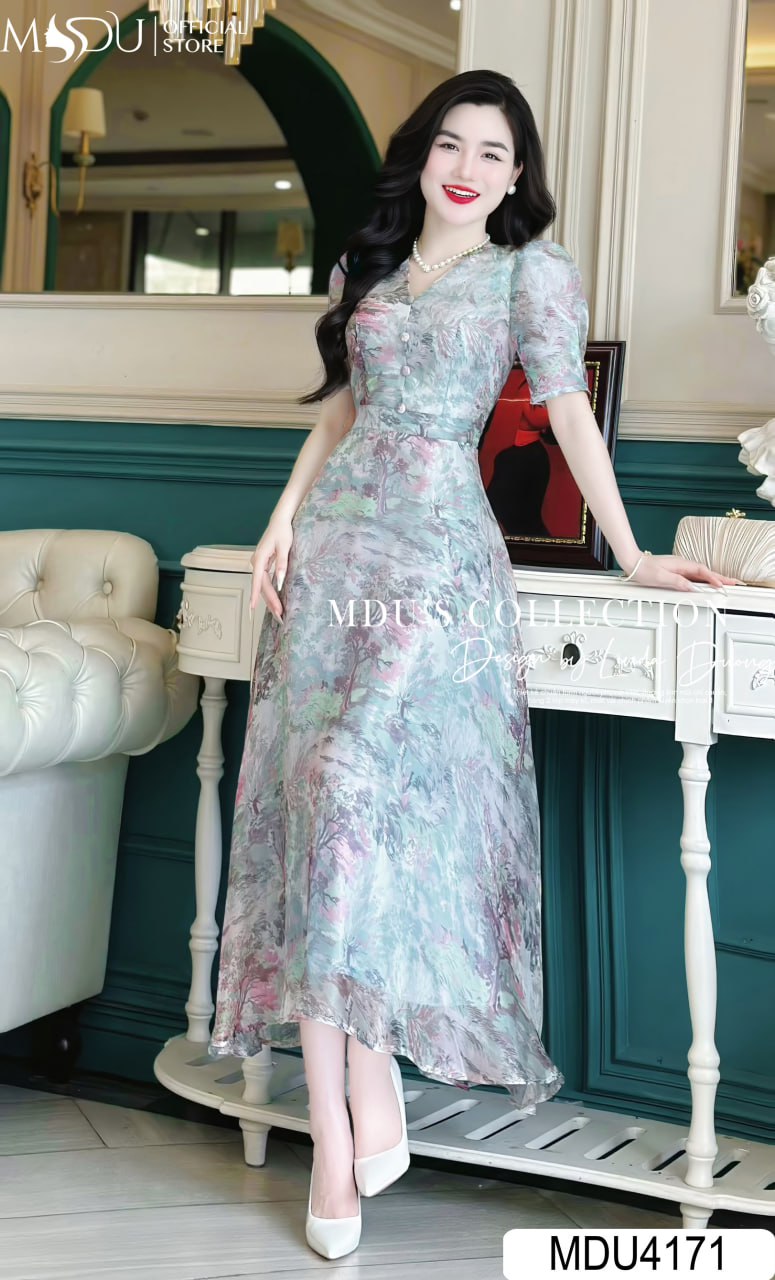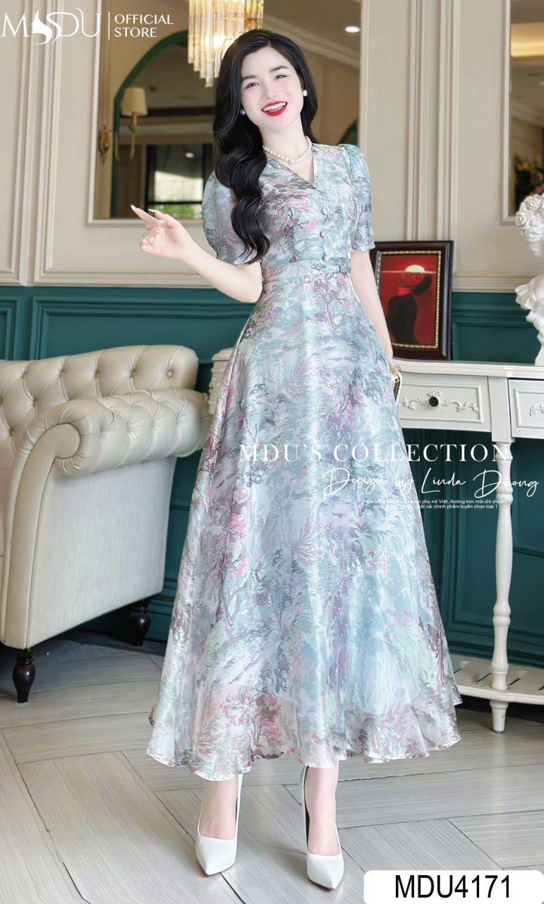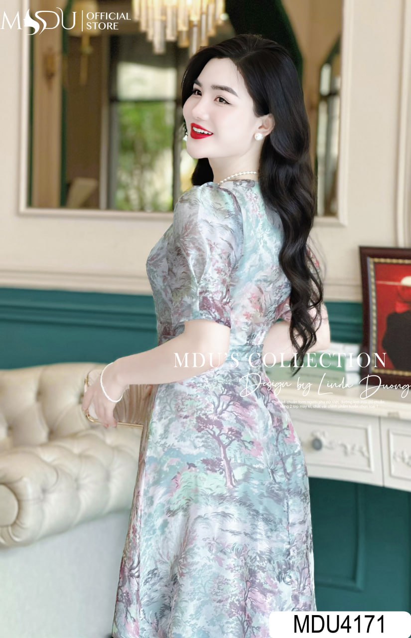 Thiết kế của váy MDU4171 tạo nên sự khác biệt với dáng dài duyên dáng và chi tiết tay bồng tinh tế. Tay bồng nhẹ nhàng không chỉ tăng thêm sự nữ tính mà còn giúp che đi khuyết điểm ở vùng cánh tay một cách hiệu quả. Những họa tiết bắt mắt được bố trí hài hòa, tôn lên vòng eo thon gọn và đường cong cơ thể, tạo sự uyển chuyển và duyên dáng trong từng bước đi.