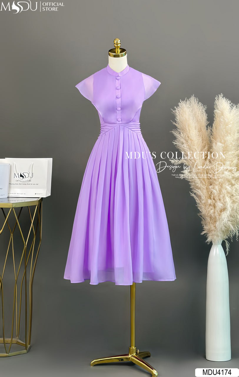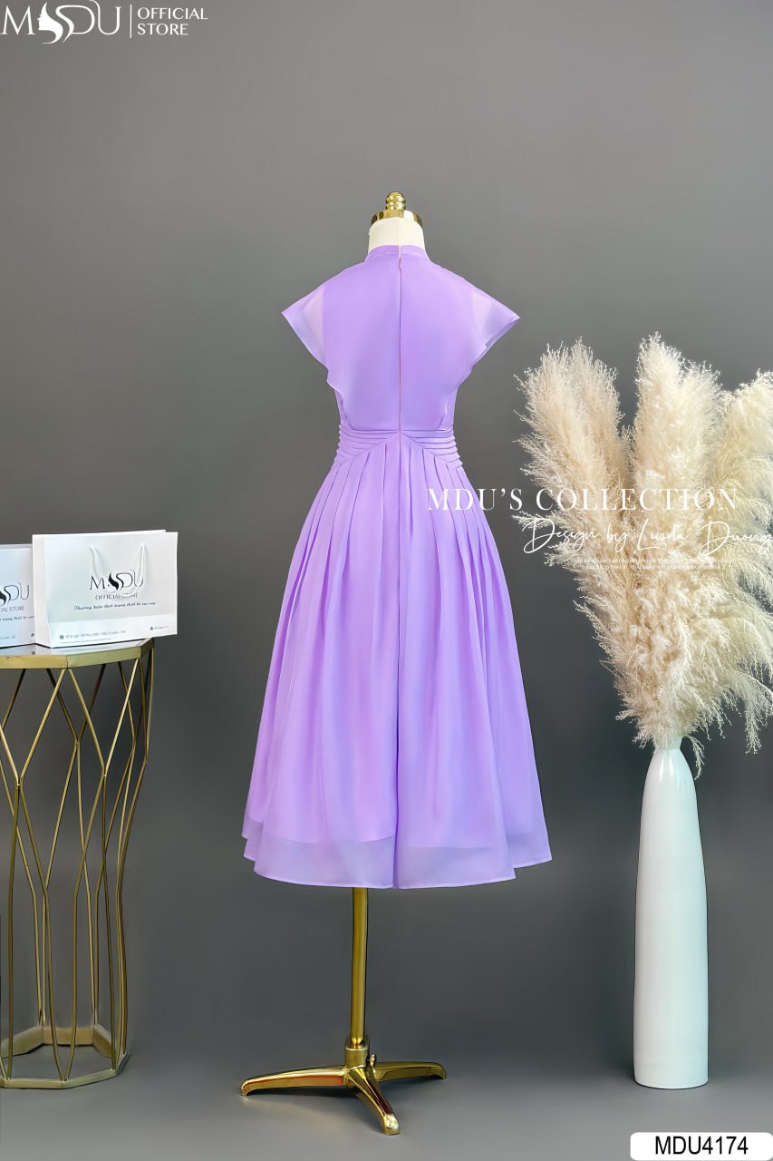 Váy Thiết Kế MDU4174 – Sự Kết Hợp Hoàn Hảo Giữa Màu Tím Sang Trọng Và Chất Liệu Tơ Óng Hàn Cao Cấp