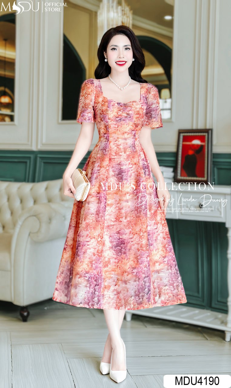 Với thiết kế xòe nhẹ, váy MDU4190 không chỉ giúp bạn thêm phần duyên dáng mà còn tôn lên vẻ đẹp thanh lịch. Họa tiết hoa bắt mắt cùng dáng váy cổ vuông là điểm nhấn đặc biệt, giúp bạn tự tin tỏa sáng trong mọi dịp, từ đi tiệc, đi công sở cho đến dạo phố.