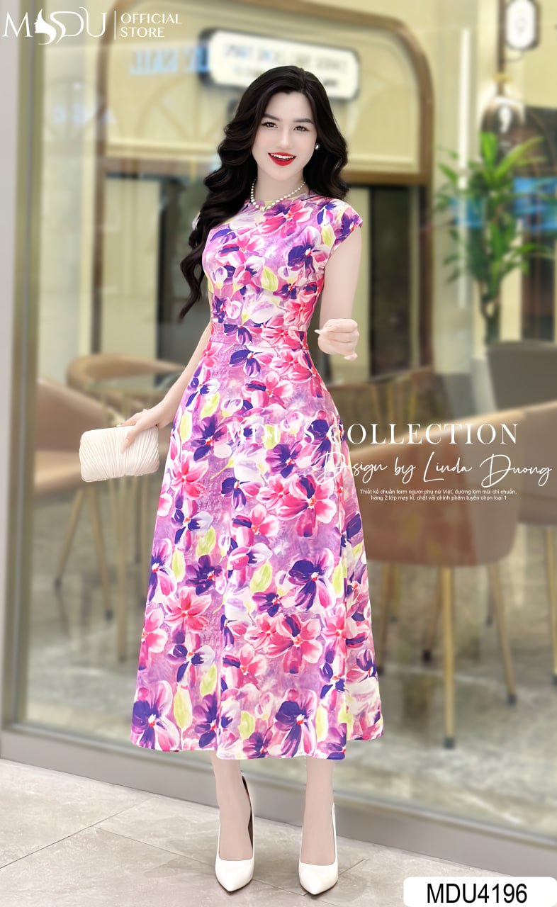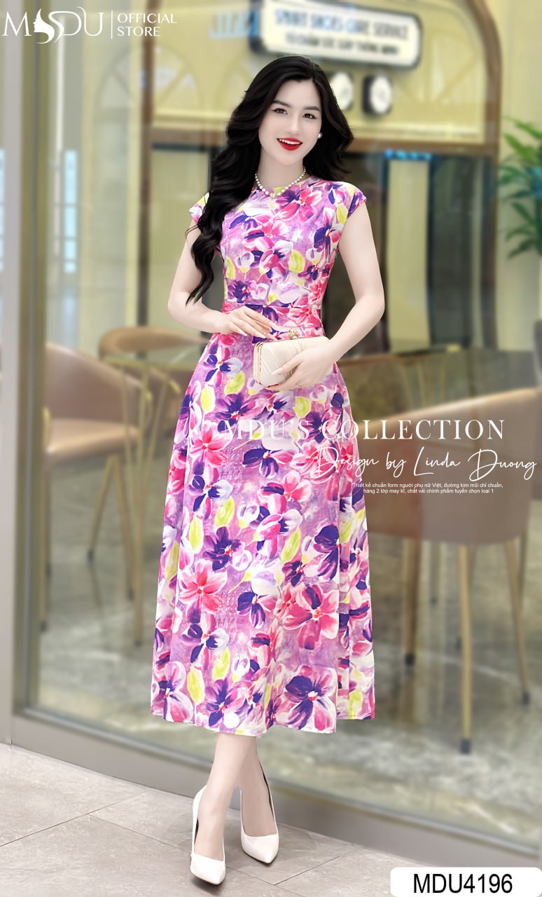 Thiết kế của váy MDU4196 tạo nên sự khác biệt nhờ dáng dài thanh lịch cùng tay hến nhẹ nhàng, mang lại sự mềm mại và nữ tính. Họa tiết bắt mắt được sắp xếp tinh tế trên nền vải, giúp che khuyết điểm một cách hiệu quả và tôn lên đường cong cơ thể. Váy dài xẻ nhẹ ở phần chân, tạo sự uyển chuyển và duyên dáng trong từng bước đi, mang đến vẻ đẹp thanh thoát và tự tin cho người mặc.