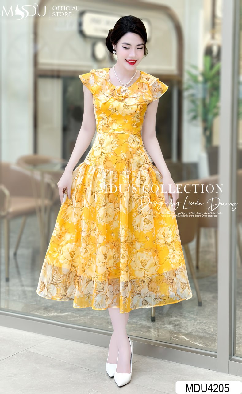Điểm nhấn của Váy MDU4205 chính là màu vàng tươi sáng, mang lại sự trẻ trung và tràn đầy năng lượng. Sắc màu này không chỉ giúp người mặc nổi bật trong mọi hoàn cảnh mà còn thể hiện phong cách tự tin và cá tính. Phom dáng ôm nhẹ ở eo cùng thiết kế hiện đại giúp tôn lên vẻ đẹp duyên dáng và thanh lịch. Đây là sự kết hợp hài hòa giữa nét cổ điển và hiện đại, phù hợp cho các buổi tiệc, công sở hay đi chơi.
