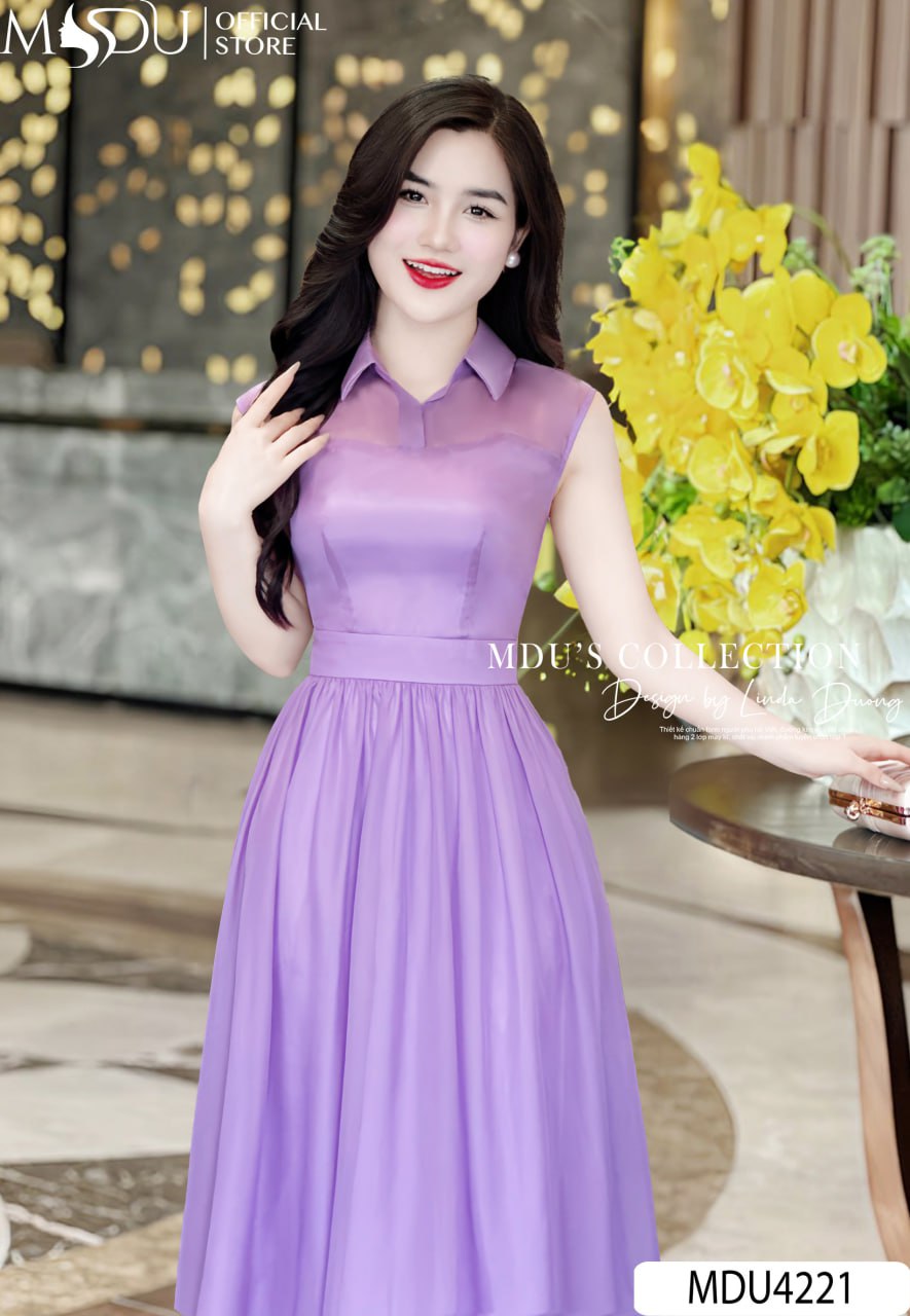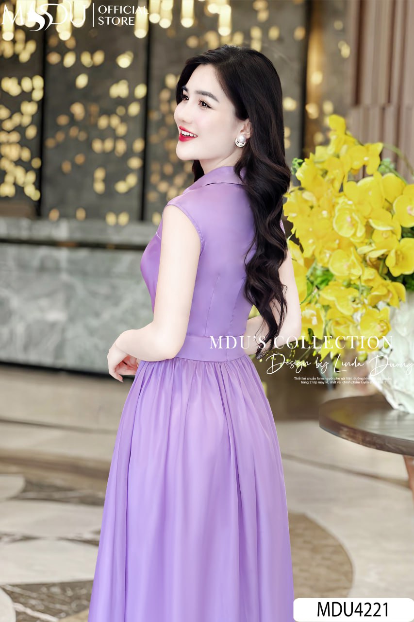 Điểm nhấn của váy MDU4221 là màu tím sang trọng, biểu tượng của sự quyền lực và đẳng cấp. Phong cách thanh lịch giúp chiếc váy dễ dàng kết hợp trong nhiều hoàn cảnh khác nhau, từ những buổi tiệc trang trọng đến các sự kiện quan trọng. Phom dáng vừa vặn, thiết kế tinh tế giúp người mặc tự tin và tỏa sáng trong mọi sự kiện.