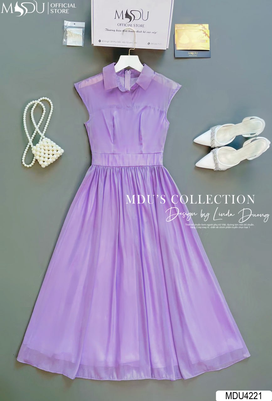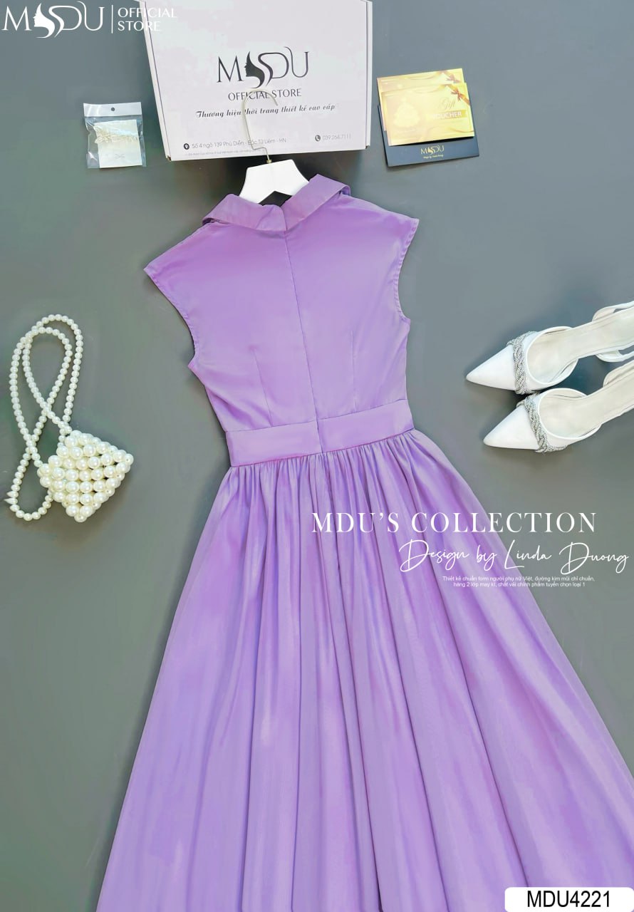 Váy Thiết Kế MDU4221 – Sự Kết Hợp Hoàn Hảo Giữa Màu Tím Quý Phái Và Chất Liệu Tơ Óng Hàn Cao Cấp