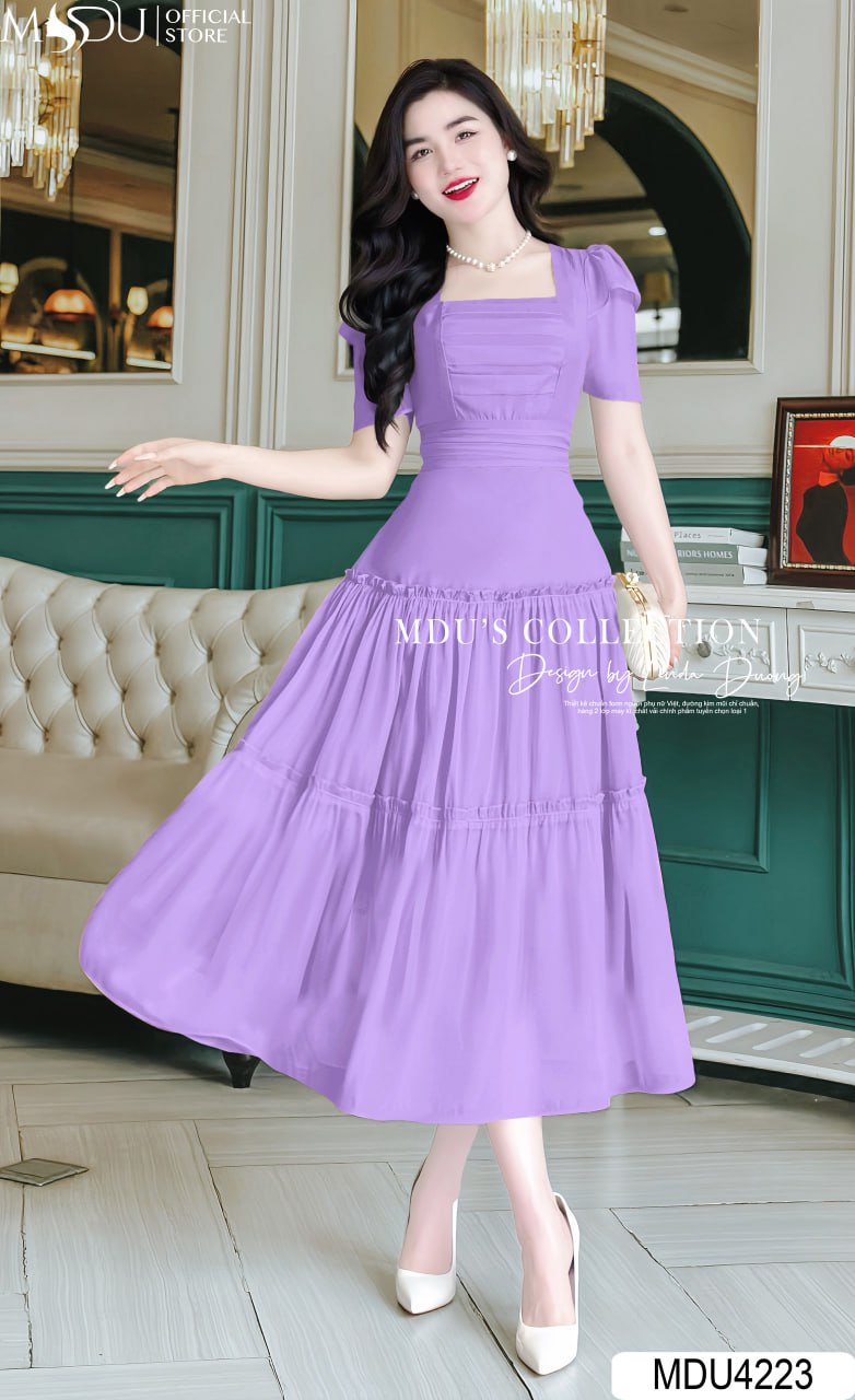 Với thiết kế xòe nhẹ và cổ vuông, váy MDU4223 mang lại vẻ đẹp thanh lịch và cuốn hút. Chi tiết xếp ly tinh tế là điểm nhấn độc đáo, tôn lên phong cách công chúa hiện đại. Sản phẩm này không chỉ phù hợp cho những buổi tiệc, công sở mà còn là lựa chọn hoàn hảo cho những buổi dạo phố.
