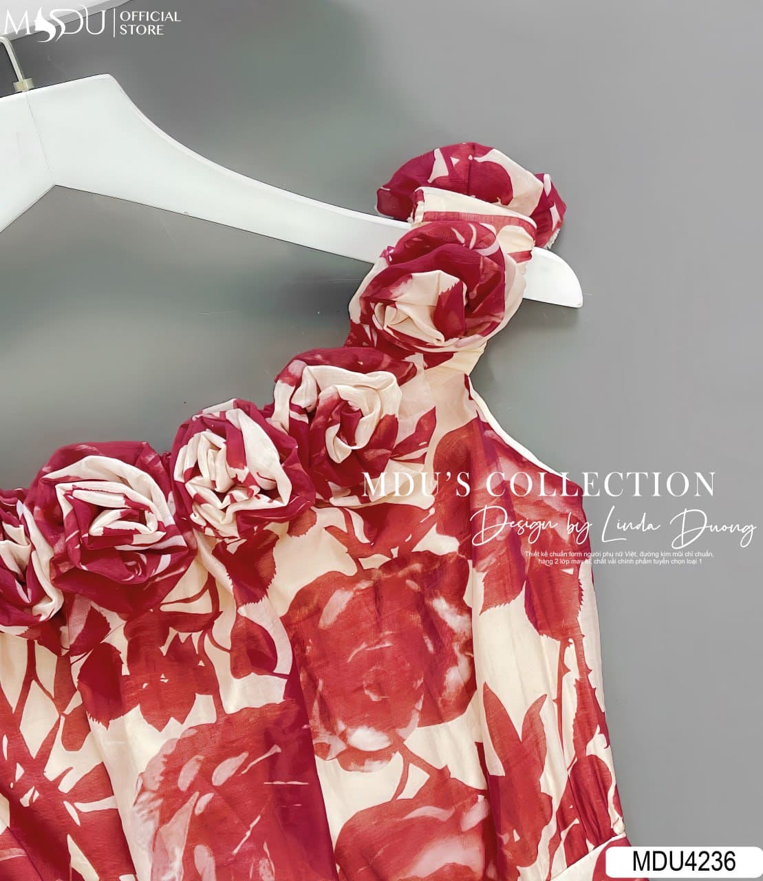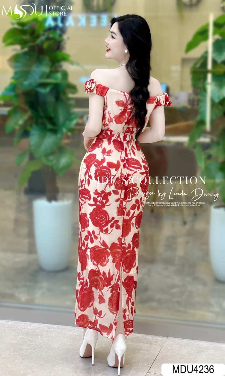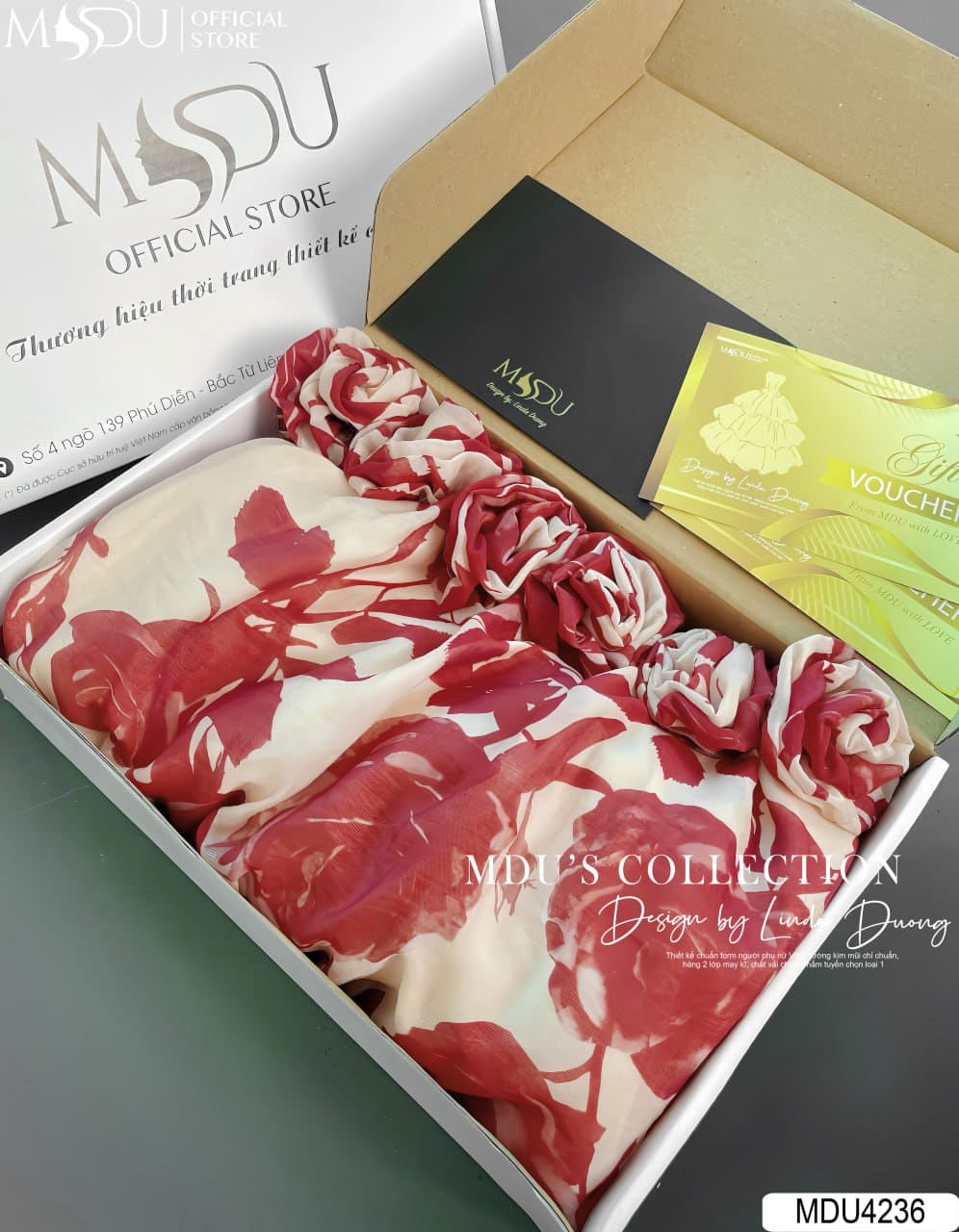 Váy Dài Sang Trọng MDU4236 – Tinh Tế Với Họa Tiết Hoa Hồng Đỏ Nổi Bật Từ MDU Fashion
