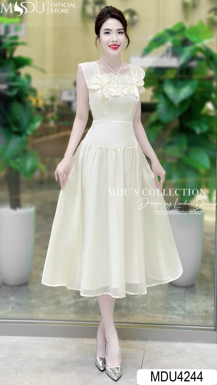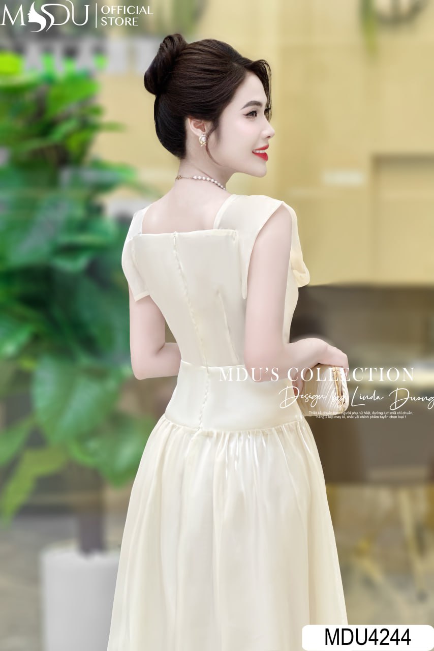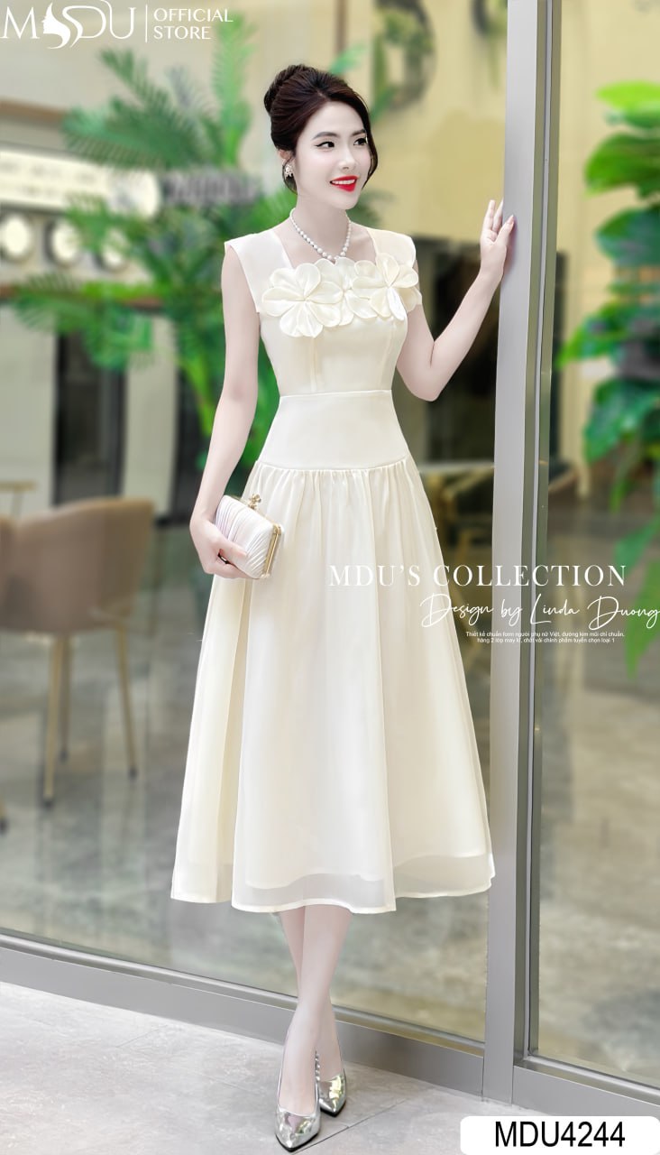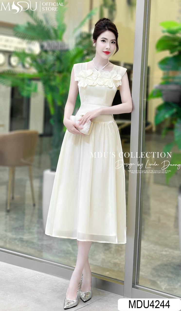 Váy MDU4244 sử dụng chất liệu vải nhập khẩu loại 1 từ các quốc gia hàng đầu, đảm bảo sự bền bỉ và vẻ đẹp sang trọng. Màu kem nhẹ nhàng kết hợp với thiết kế cổ vuông và hoa đính nổi, tạo nên sự cuốn hút đặc biệt. Từng chi tiết từ khóa kéo đến đường may đều được hoàn thiện tỉ mỉ, an toàn cho da và mang lại cảm giác dễ chịu.
