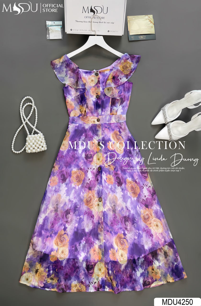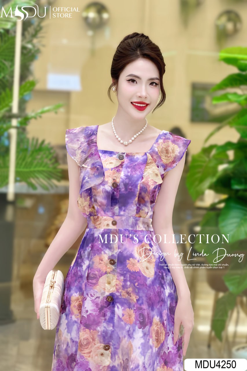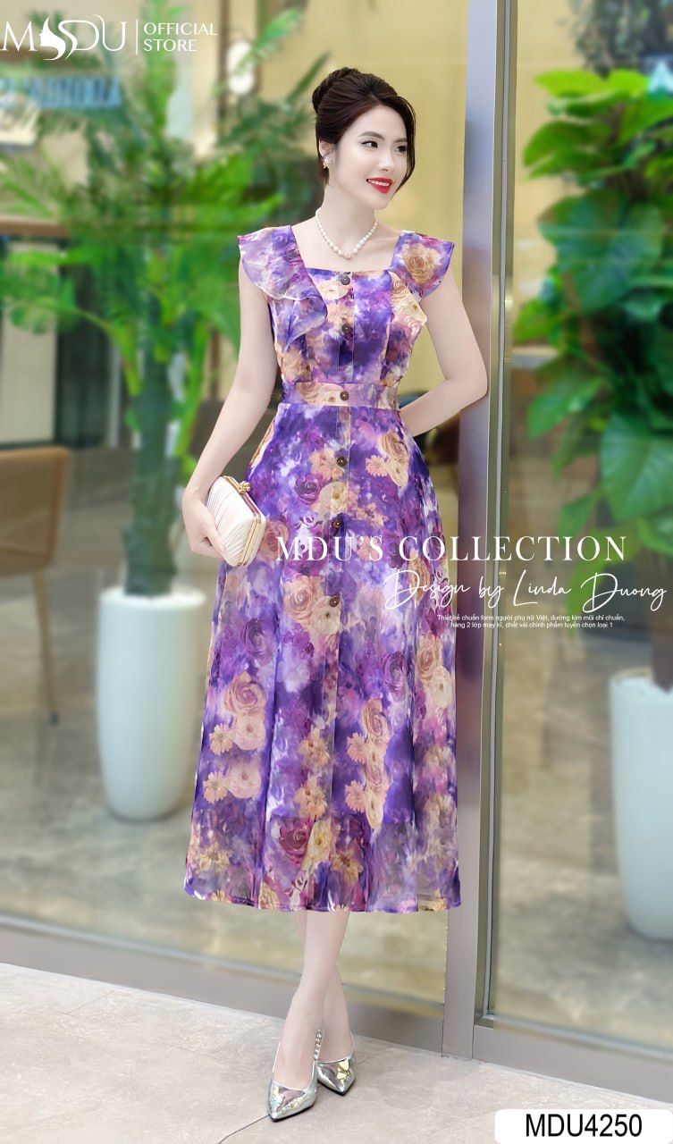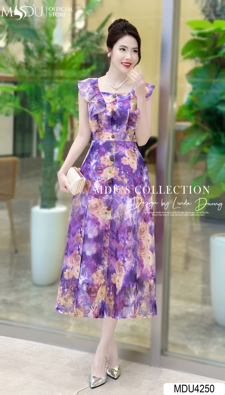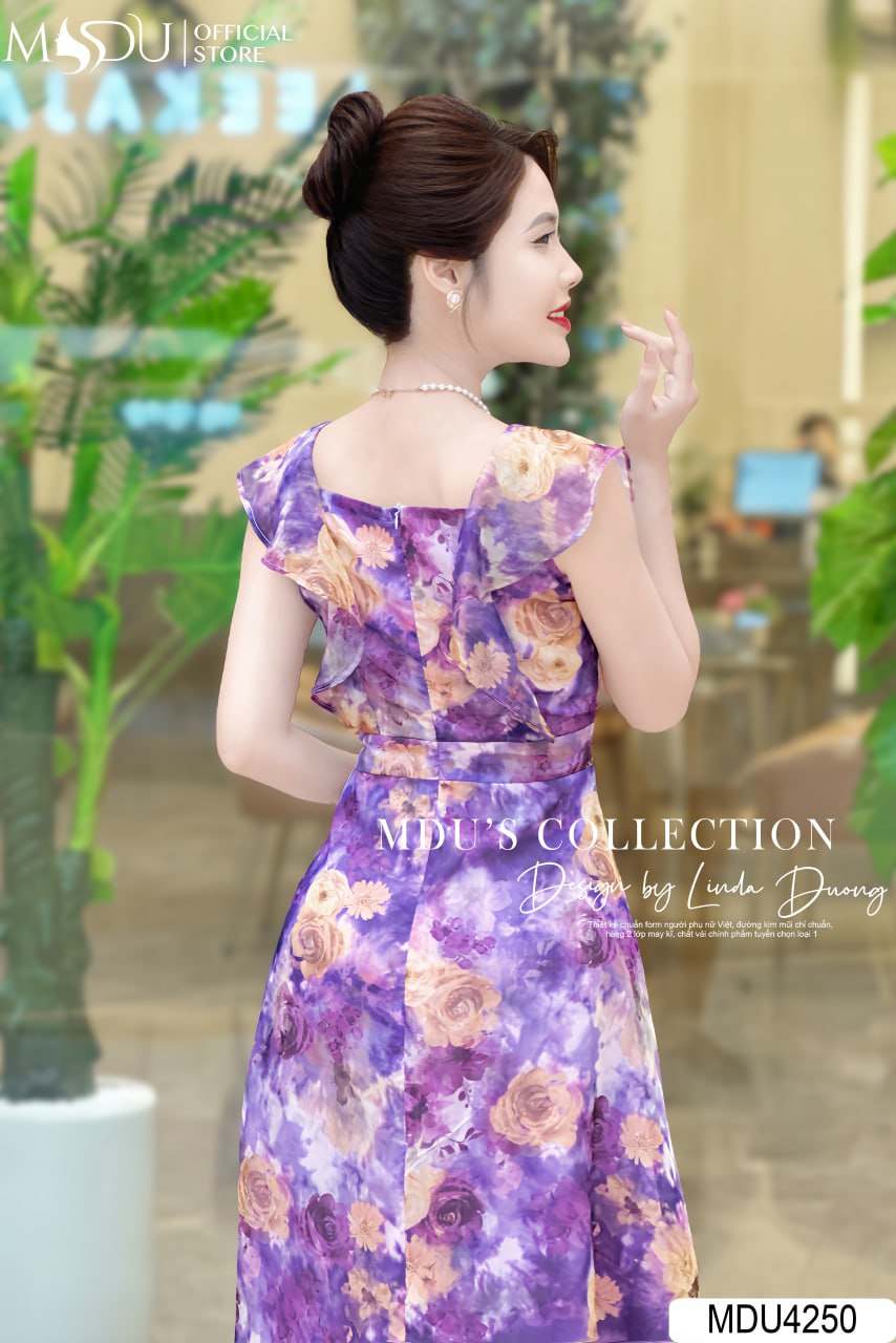 Váy Thiết Kế MDU4250 – Sự Sang Trọng Và Đẳng Cấp Với Chất Liệu Tơ Hàn Màu Tím