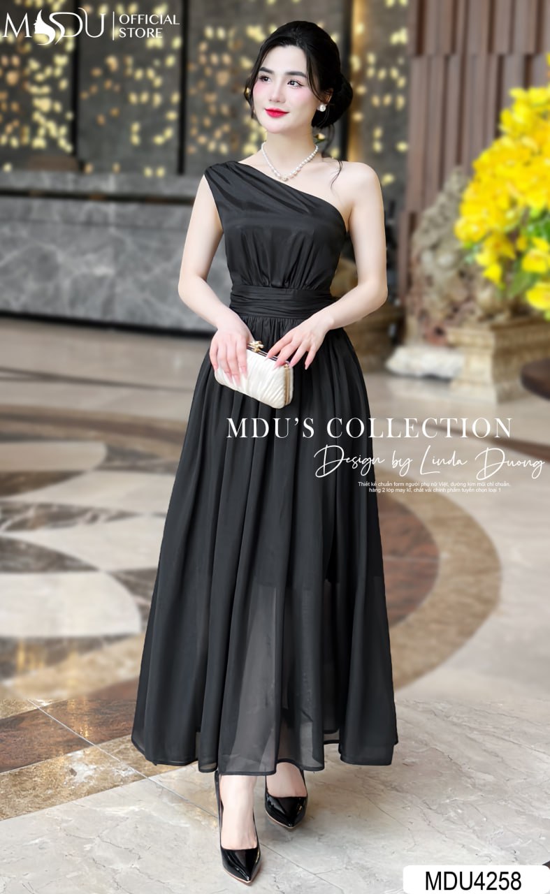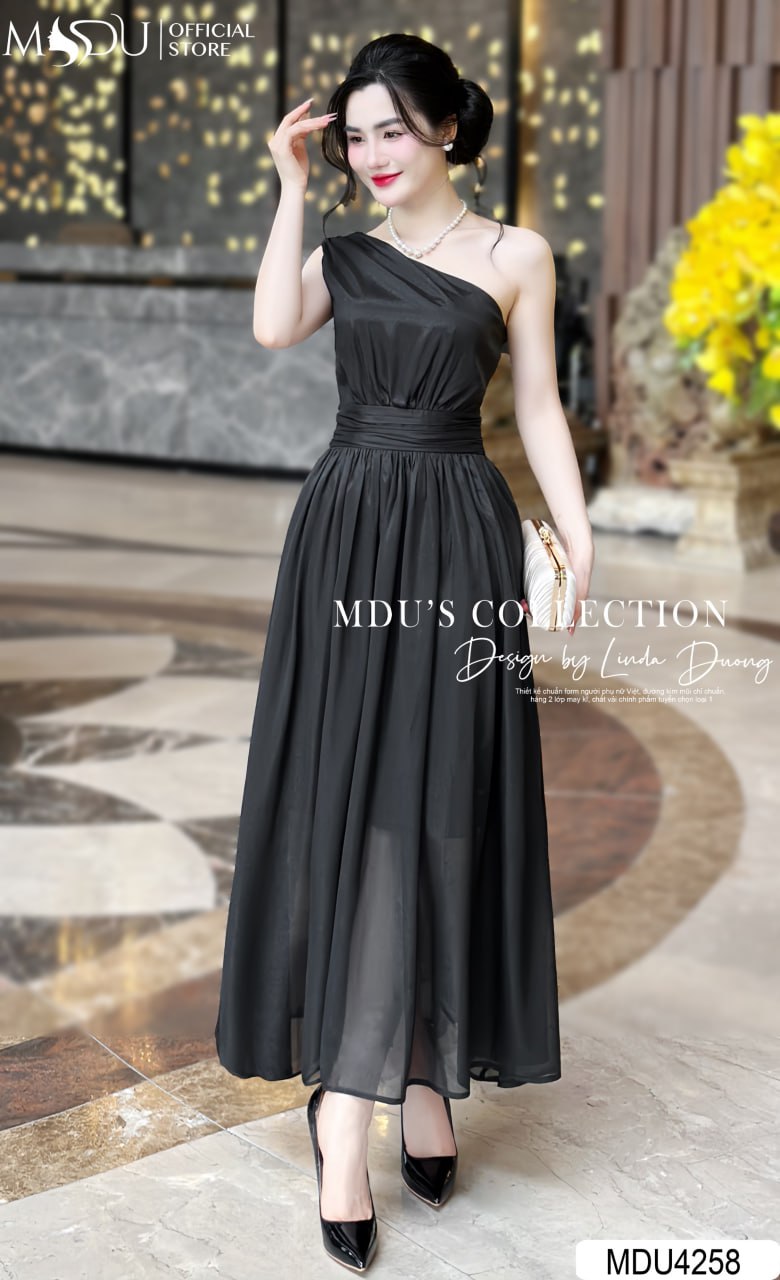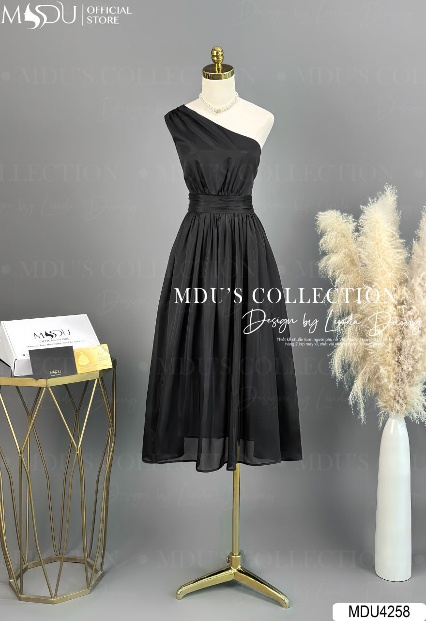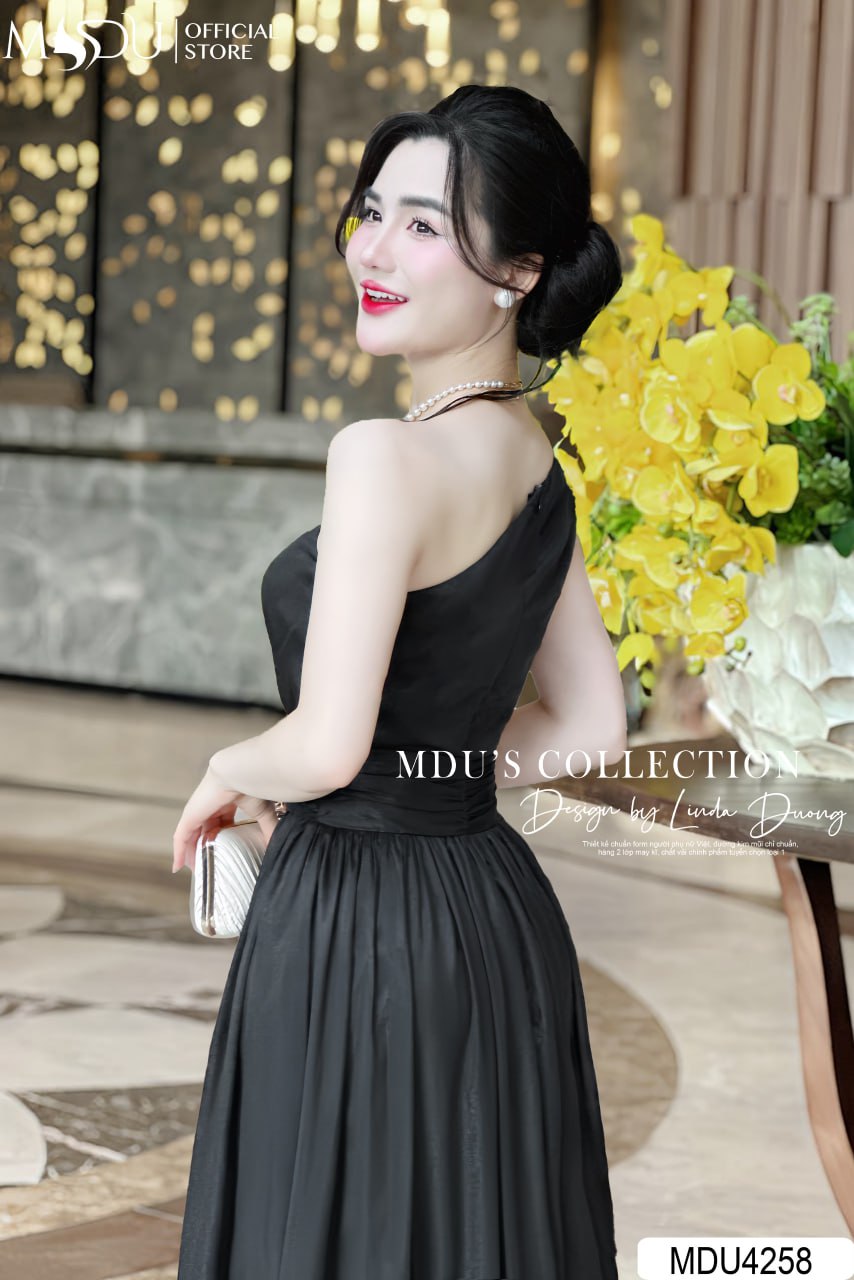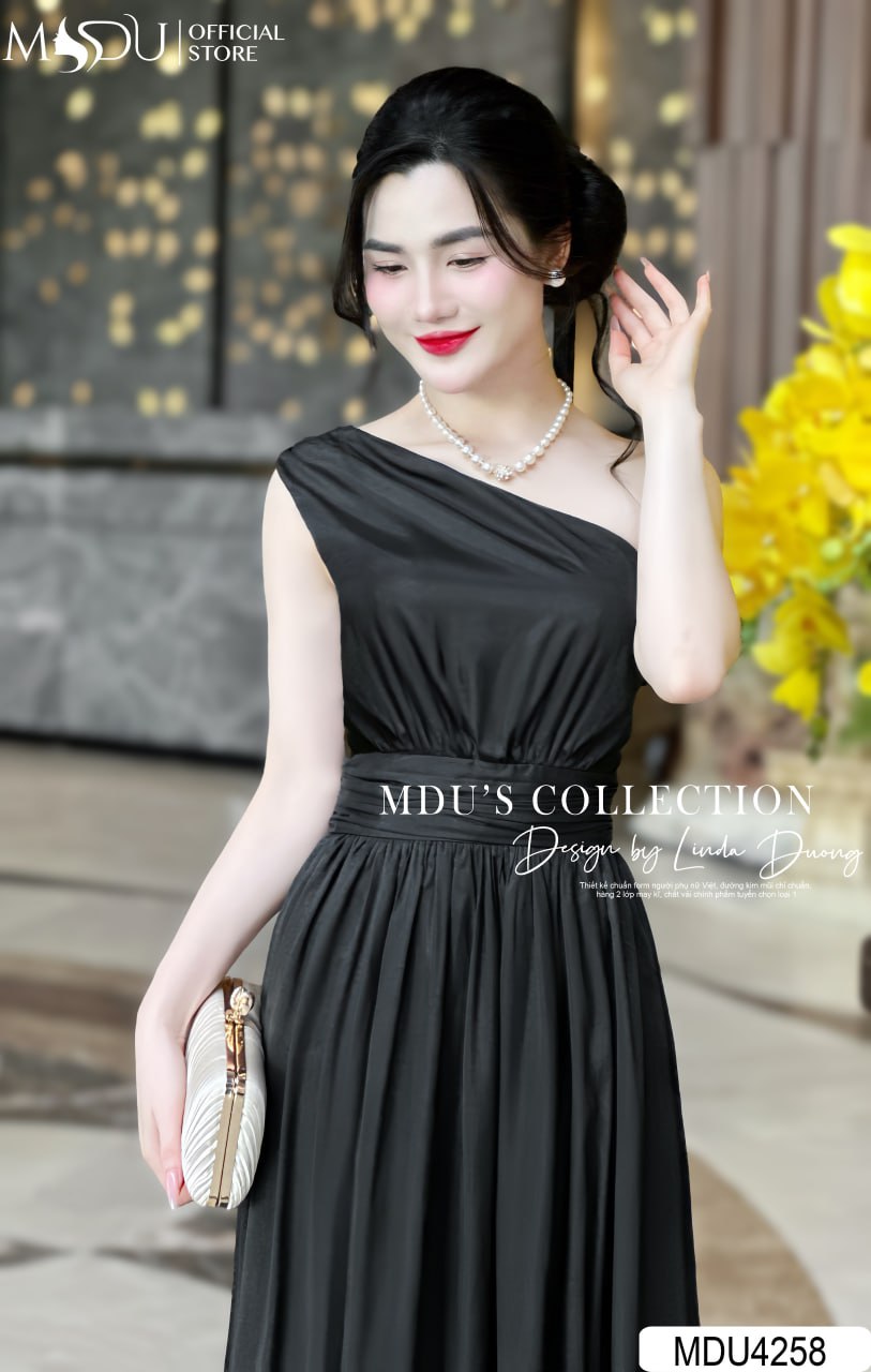 Váy Thiết Kế MDU4258 – Màu Đen Sang Trọng Dáng Xòe Nhẹ Trễ Vai Cuốn Hút