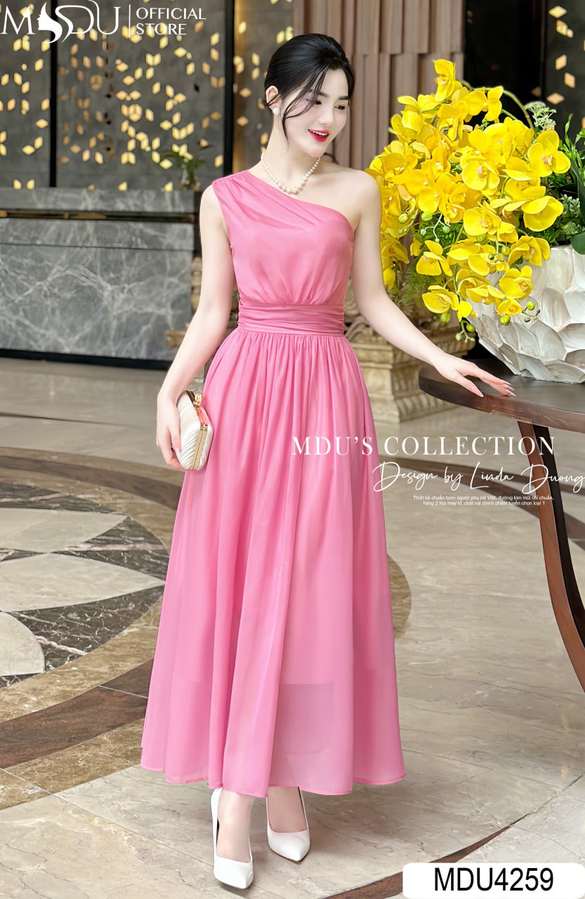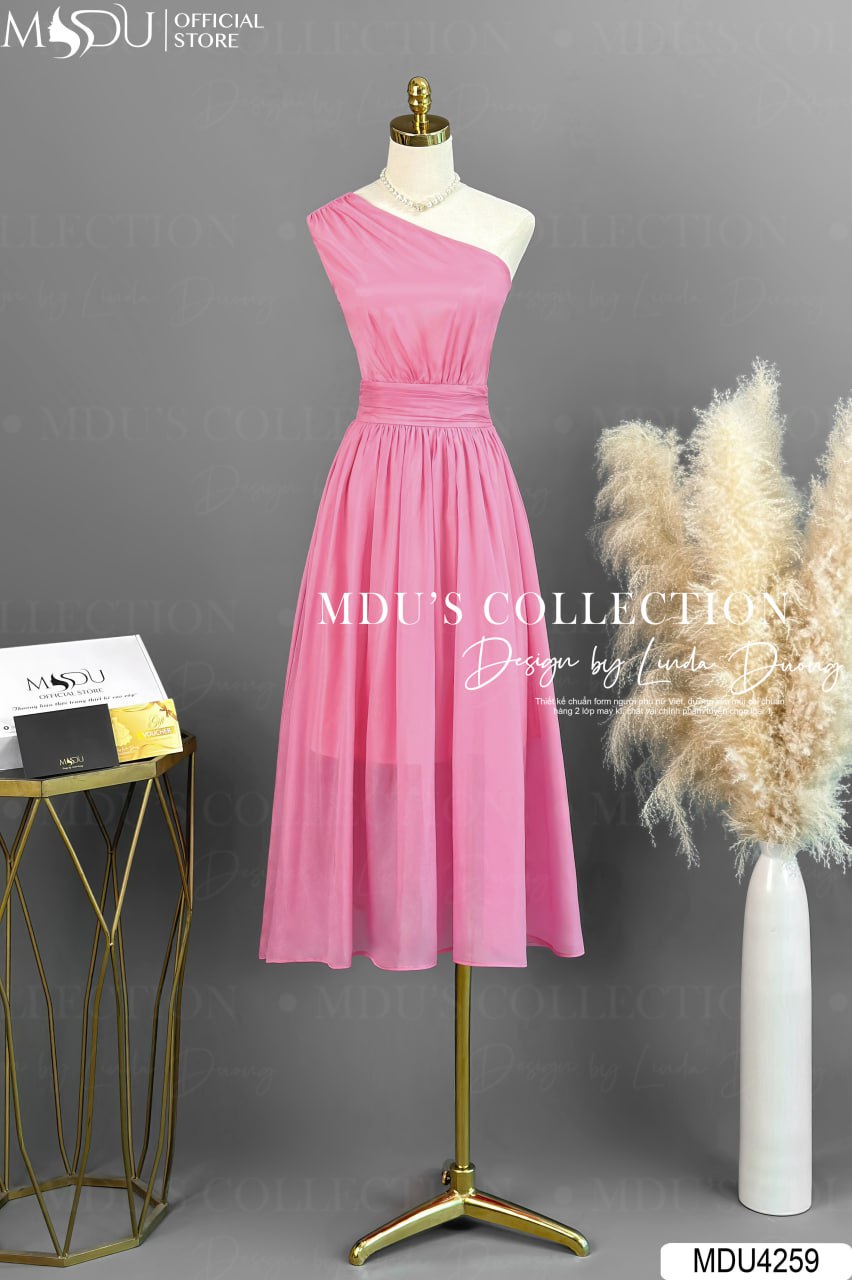 Váy Thiết Kế MDU4259 – Chất Liệu Tơ Óng Hàn Cao Cấp, Màu Hồng Nhạt Cho Phong Cách Thời Trang Thanh Lịch