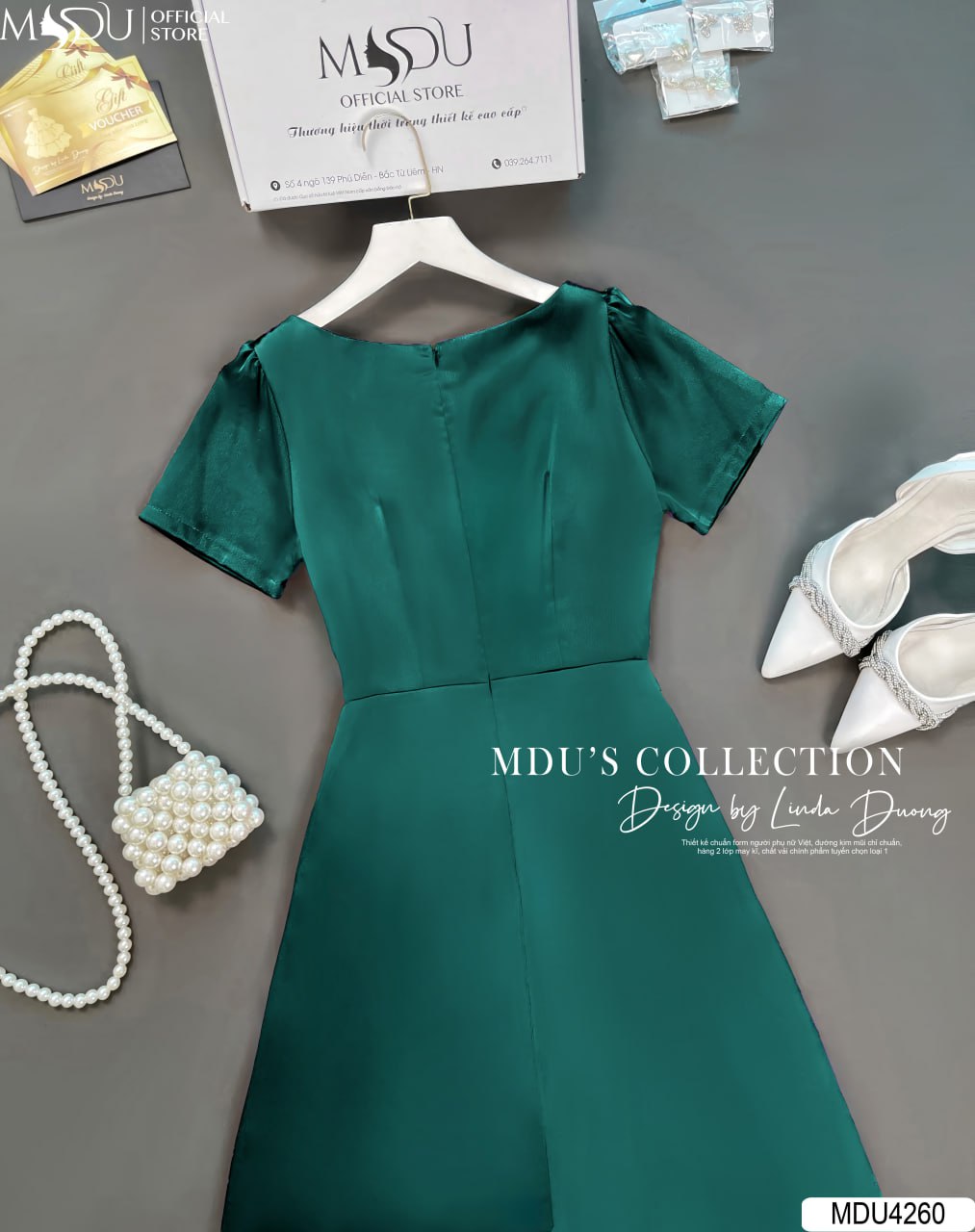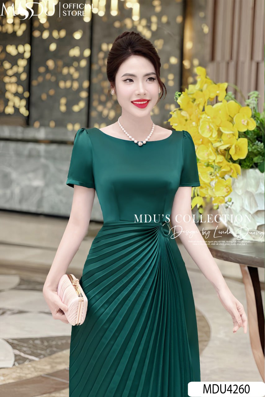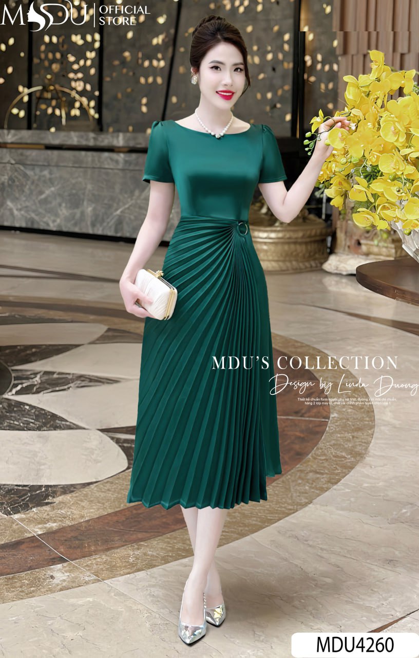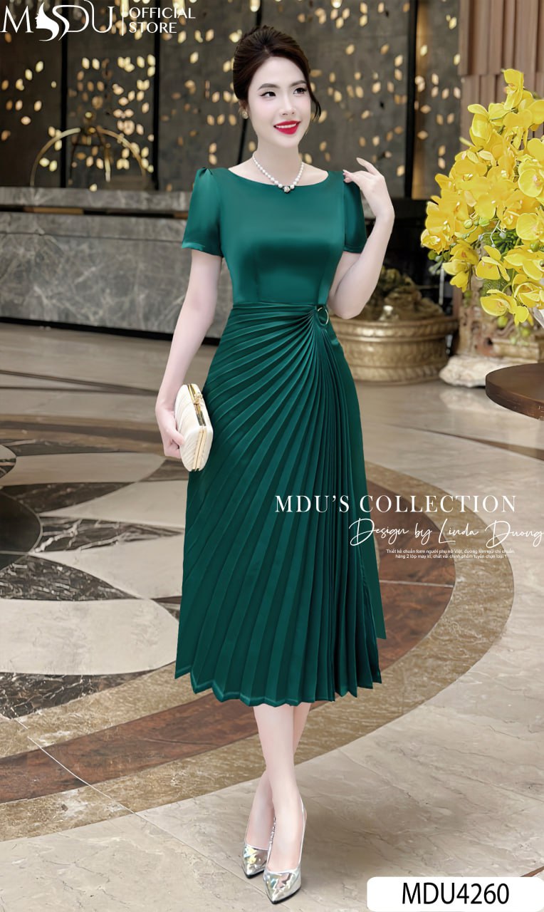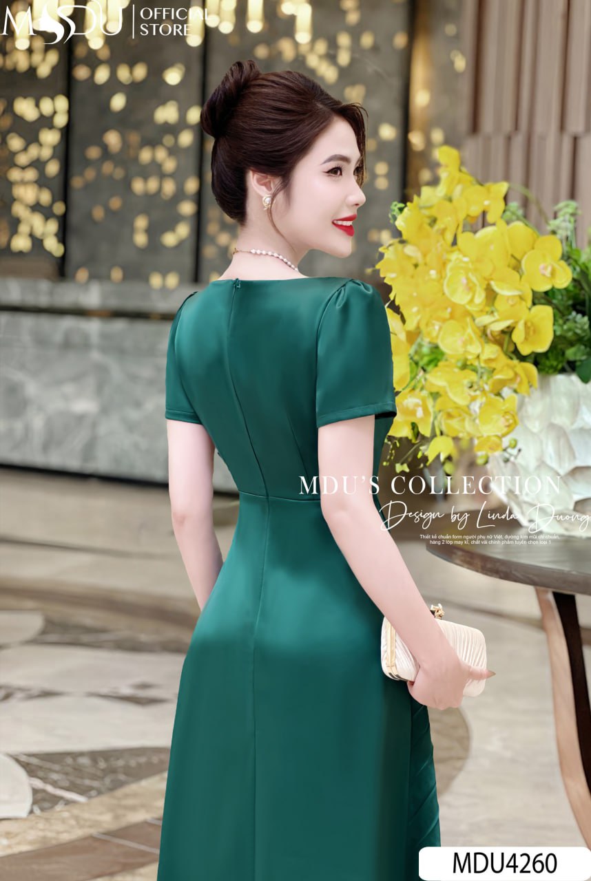 Váy Thiết Kế MDU4260 – Chất Liệu Lụa Hàn Cao Cấp, Màu Xanh Lá Sang Trọng Cho Phong Cách Thời Trang Đẳng Cấp