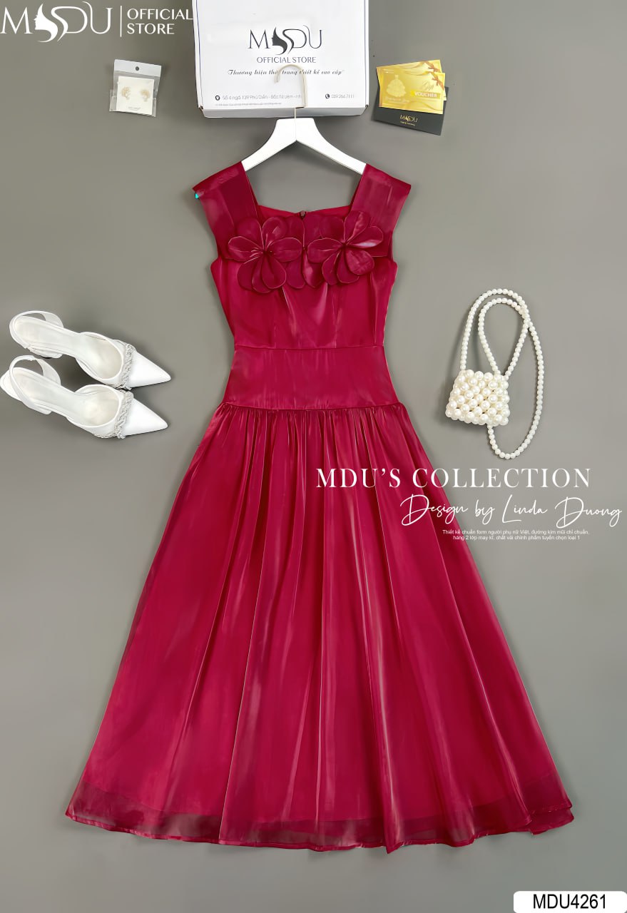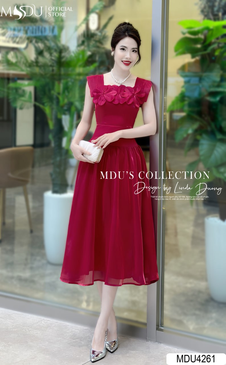 Váy MDU4261 được làm từ chất liệu vải loại 1 nhập khẩu, đảm bảo độ bền và vẻ đẹp vượt thời gian. Thiết kế váy xòe nhẹ nhàng, cổ vuông tinh tế cùng kỹ thuật đính hoa độc đáo trên váy tạo nên vẻ đẹp thanh lịch và cuốn hút. Điểm nhấn đặc biệt của chiếc váy là sự cẩn thận trong từng chi tiết, từ việc bọc khóa và dấu đường may, đảm bảo an toàn tuyệt đối cho da và mang lại sự dễ chịu khi mặc.
