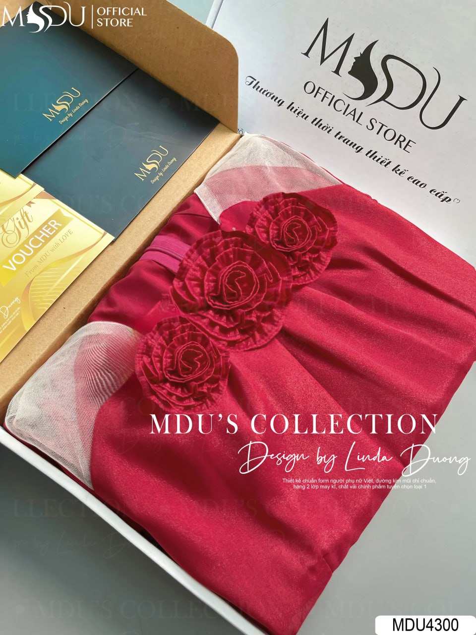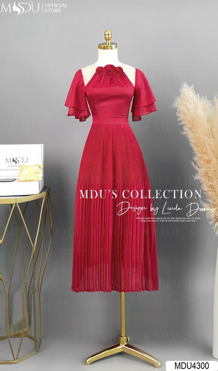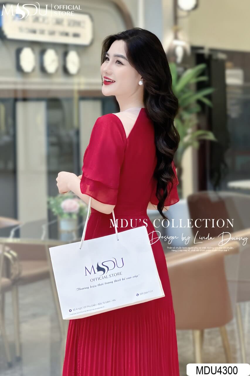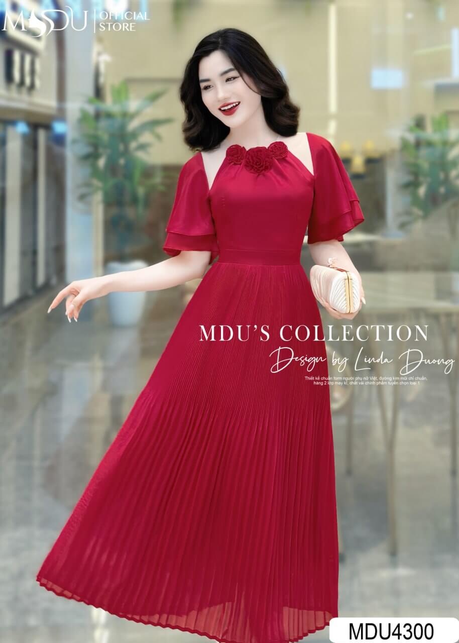 Váy Thiết Kế MDU4300 – Sự Kết Hợp Hoàn Hảo Giữa Màu Đỏ Nổi Bật Và Chất Liệu Tơ Óng Mềm Mại Cao Cấp