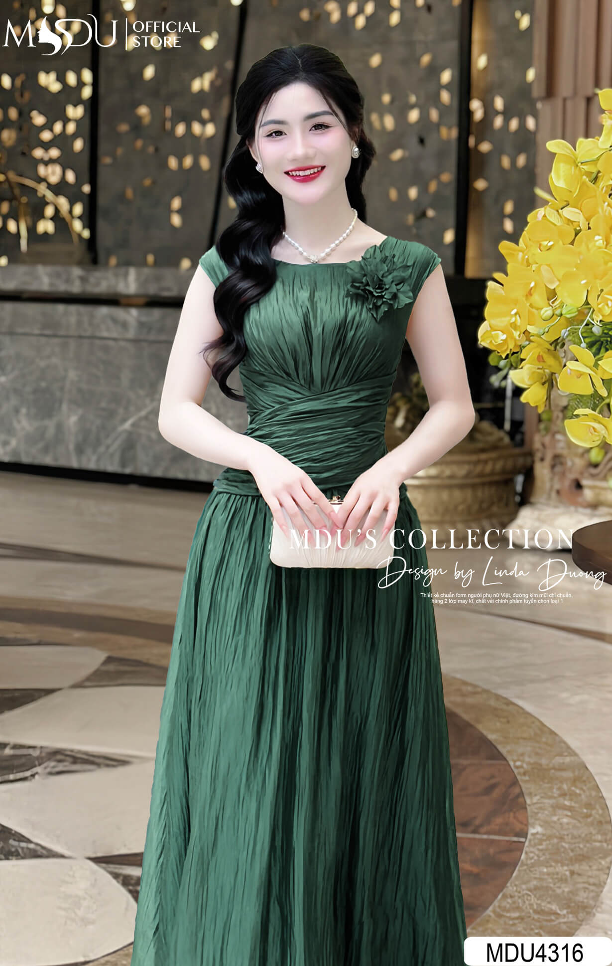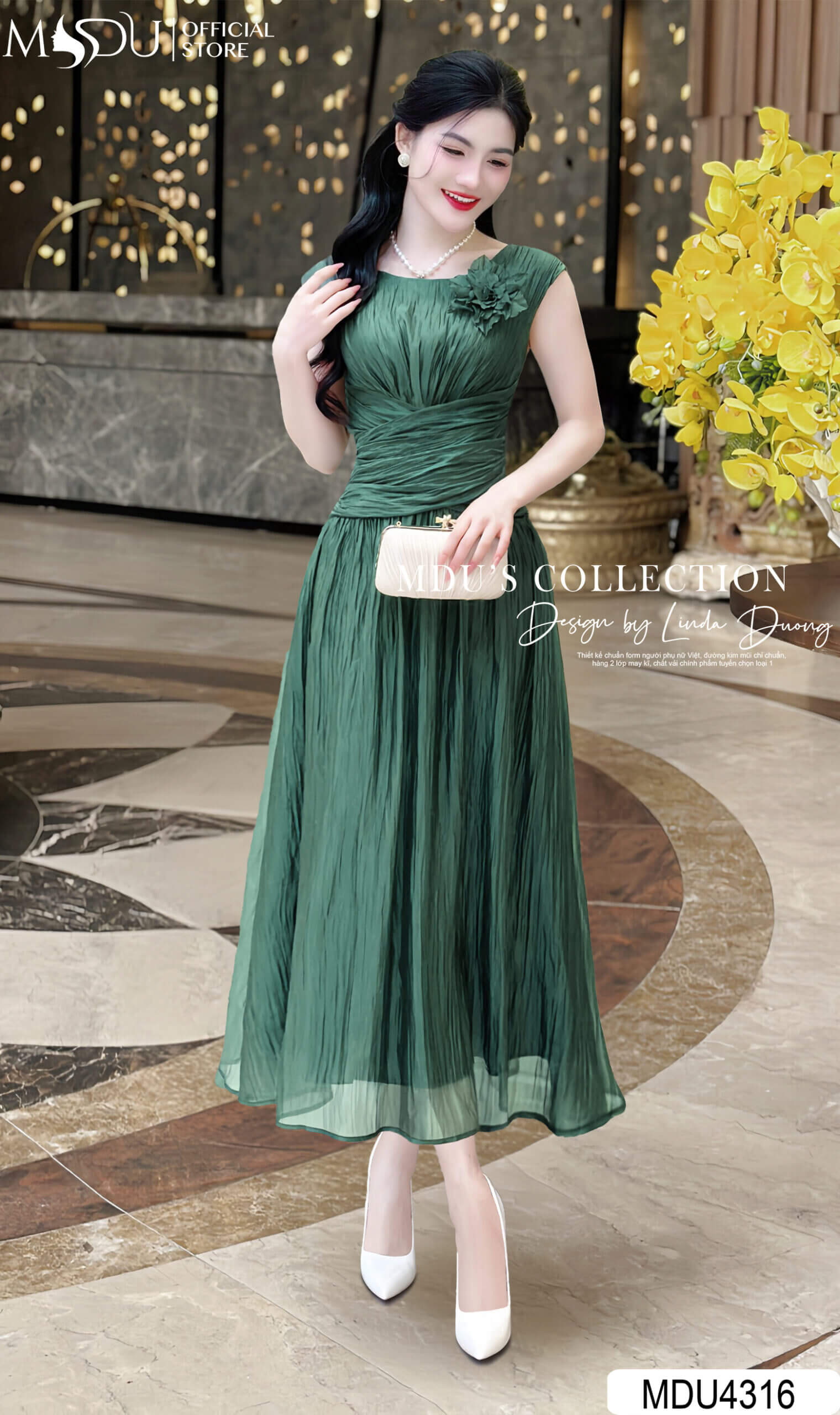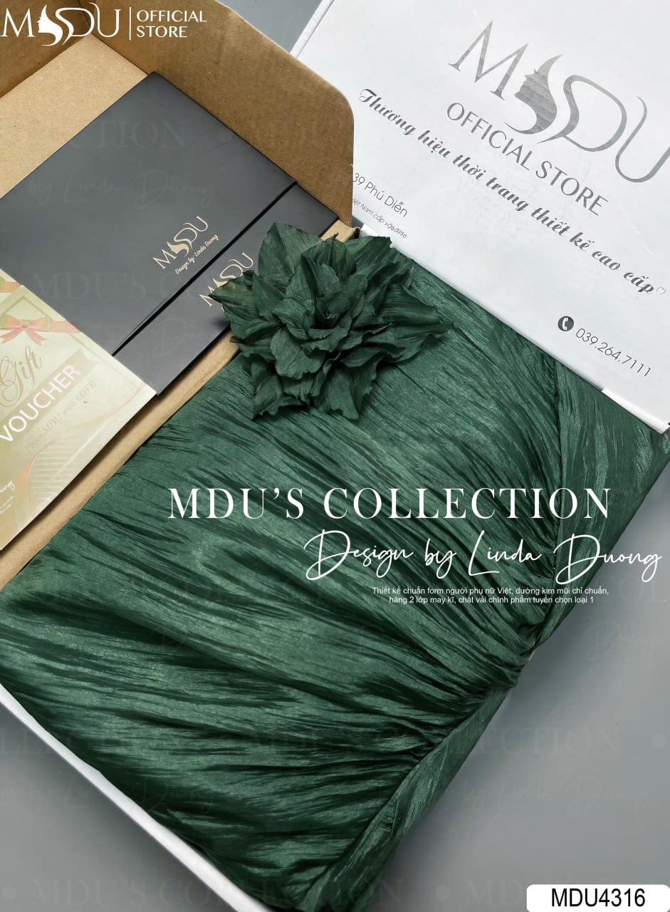 MDU4316 nổi bật với thiết kế dáng dài phối hoa đính tinh tế, tạo nên vẻ đẹp thanh lịch và cuốn hút. Khóa sau được giấu kín, cùng với các đường may cẩn thận, tạo nên sự hoàn hảo và sang trọng. Chiếc váy này không chỉ thích hợp cho các buổi tiệc mà còn phù hợp khi đi công sở hay dạo phố, đảm bảo tính ứng dụng cao và không bao giờ lỗi mốt.
