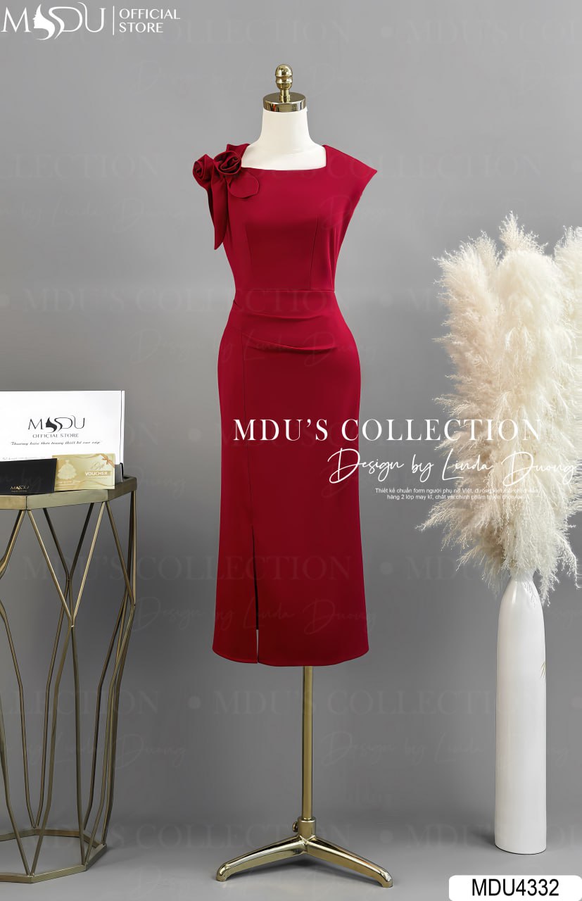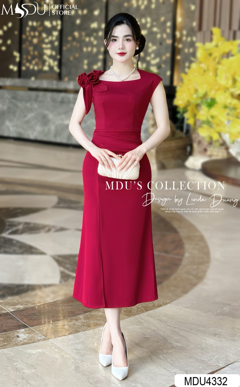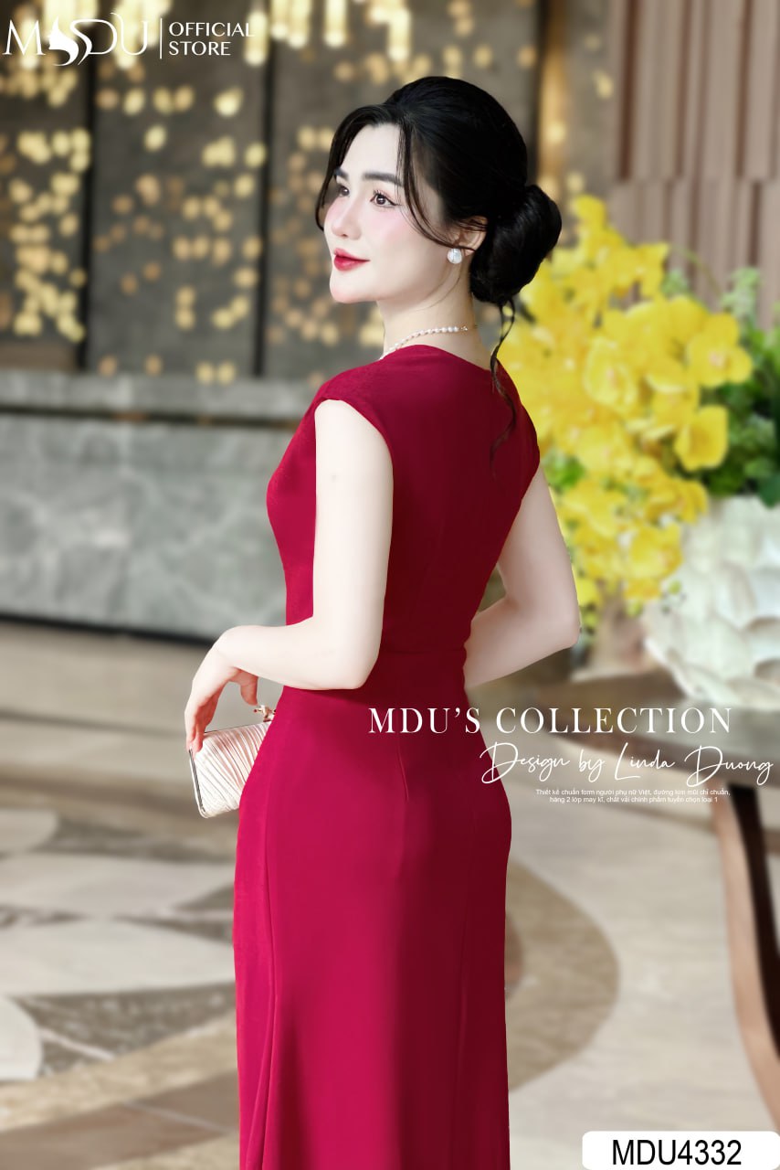 Chiếc váy MDU4332 gây ấn tượng với màu đỏ rực rỡ, dễ dàng phối hợp cùng phụ kiện ánh kim hoặc trang sức ngọc trai để tôn lên phong cách thanh lịch và tinh tế. Thiết kế ôm nhẹ tôn lên vóc dáng, phù hợp với các dịp quan trọng.