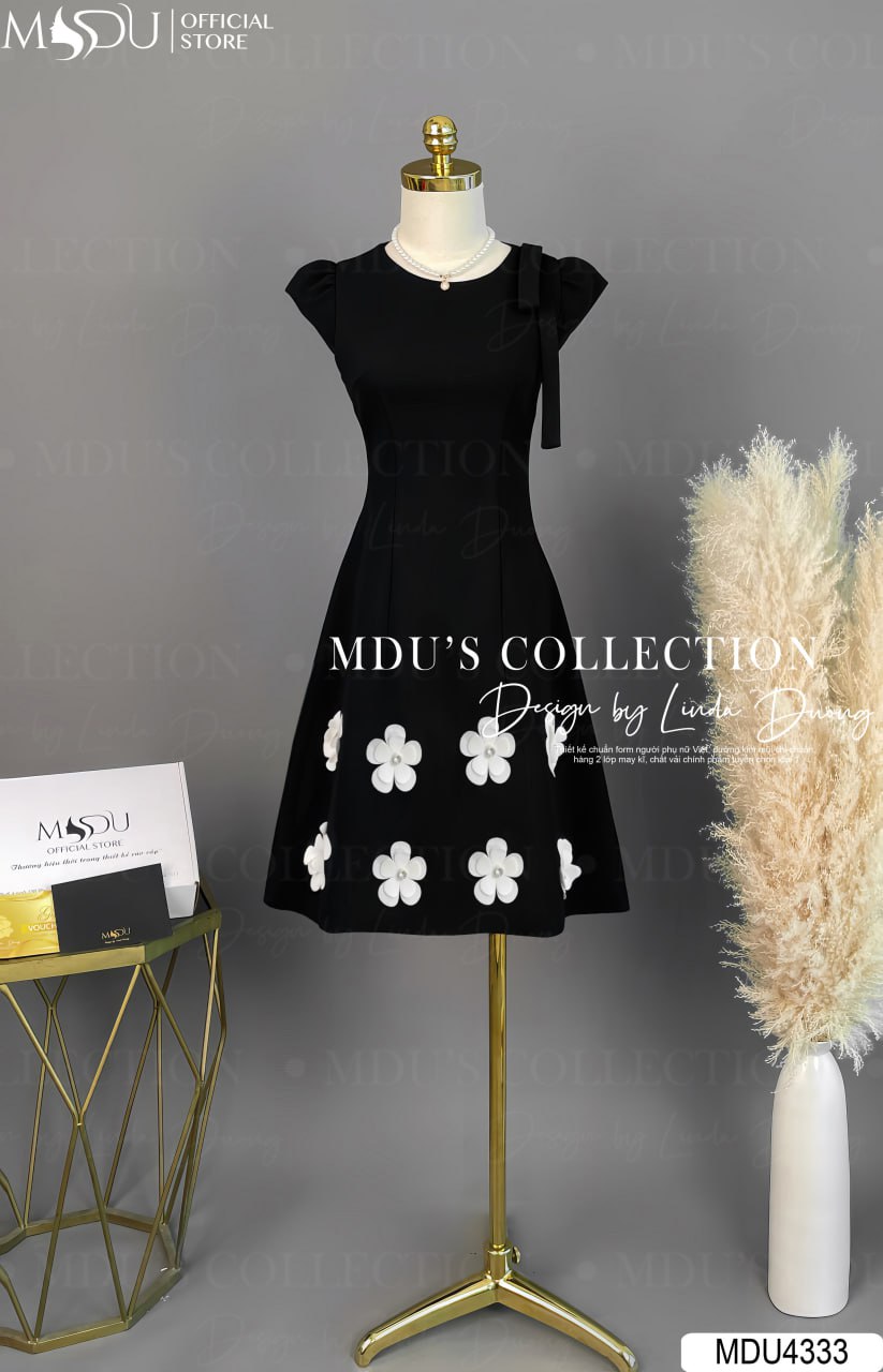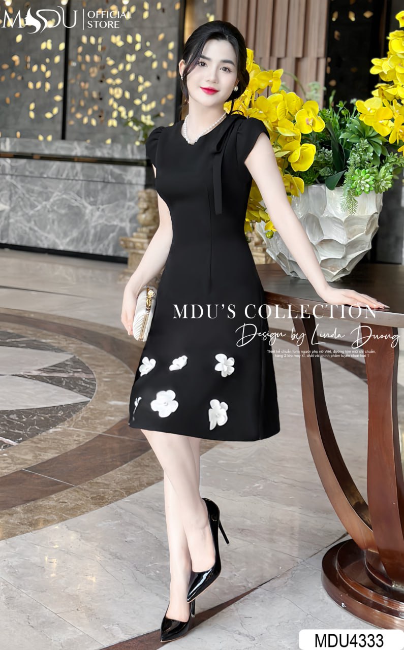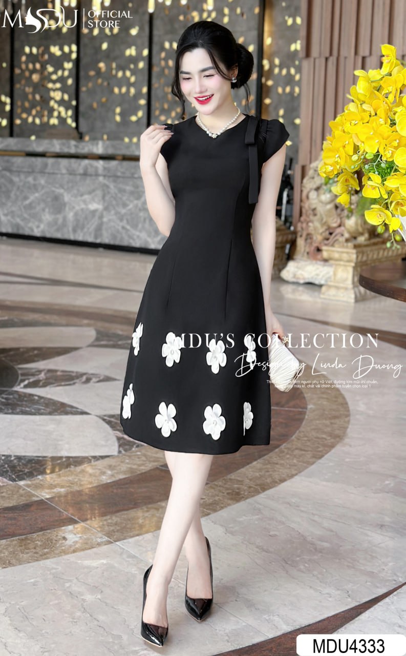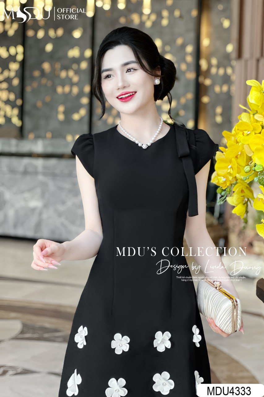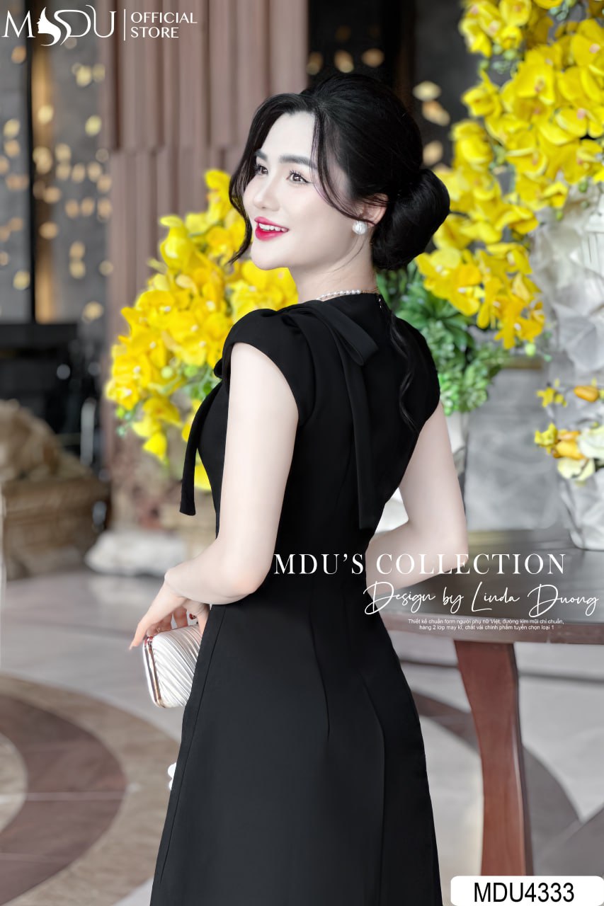 Chiếc váy MDU4333 nổi bật với màu đen cổ điển, dễ dàng phối hợp cùng phụ kiện ánh kim hoặc ngọc trai để tạo nên phong cách sang trọng và đẳng cấp. Thiết kế ôm nhẹ tôn dáng, giúp bạn luôn nổi bật tại các sự kiện quan trọng và buổi tiệc đặc biệt.