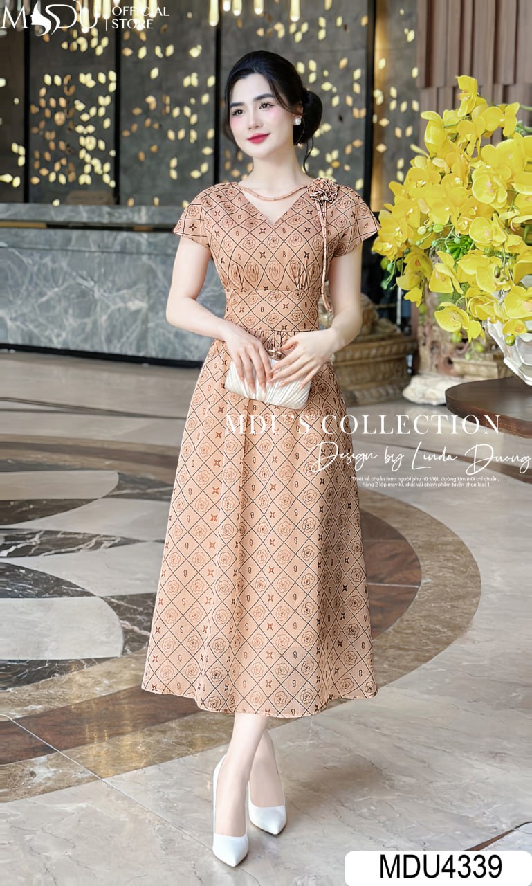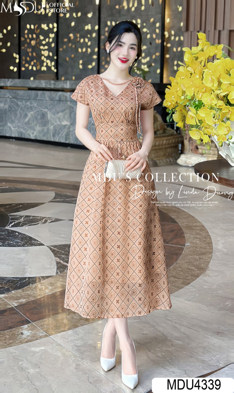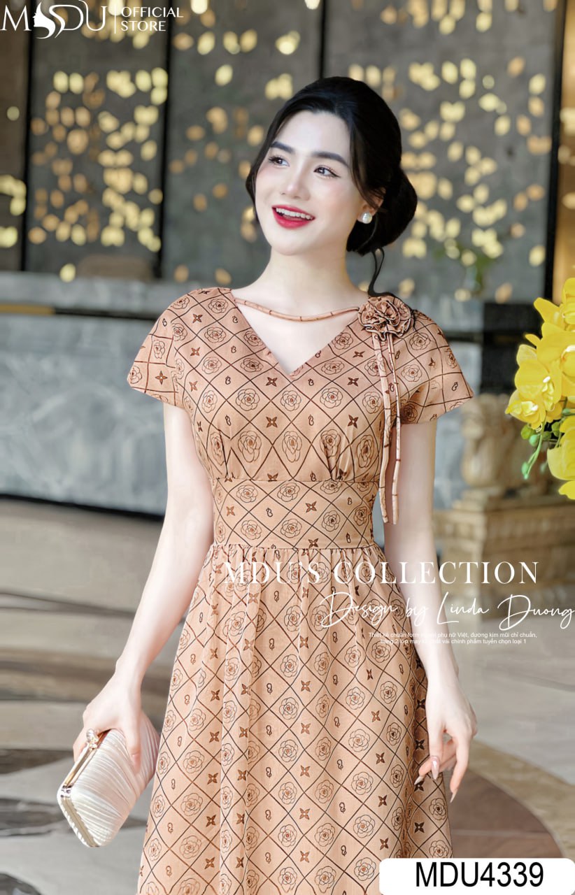 Váy Thiết Kế MDU4339 – Sự Kết Hợp Hoàn Hảo Giữa Màu Nâu Sang Trọng Và Chất Liệu Tơ Hàn Cao Cấp