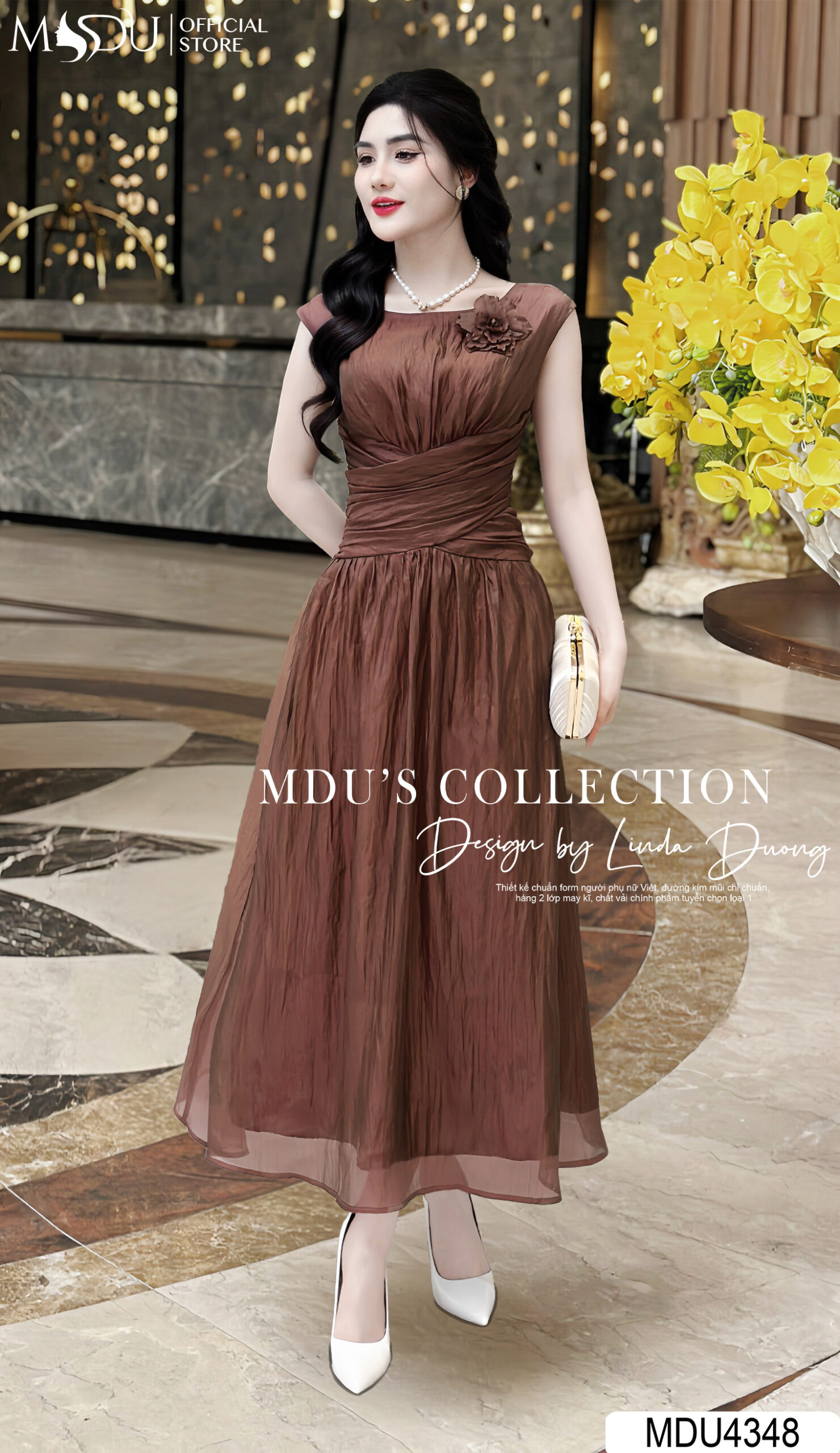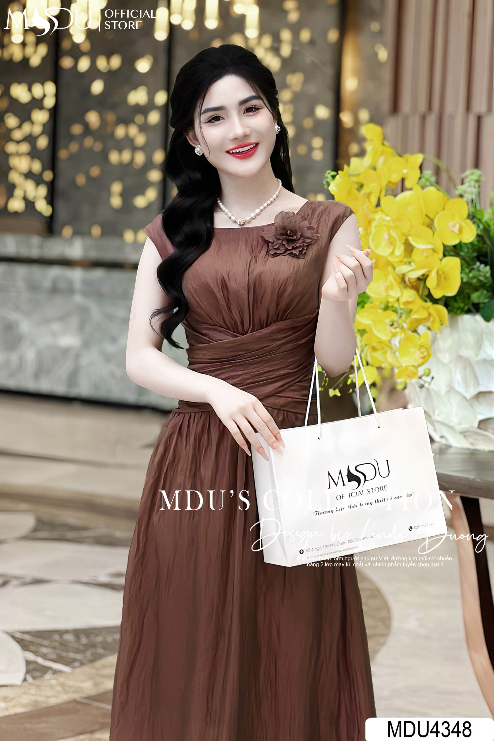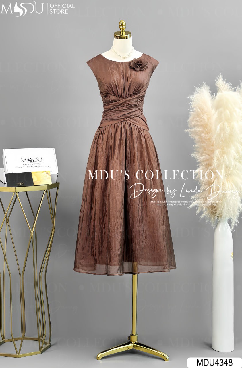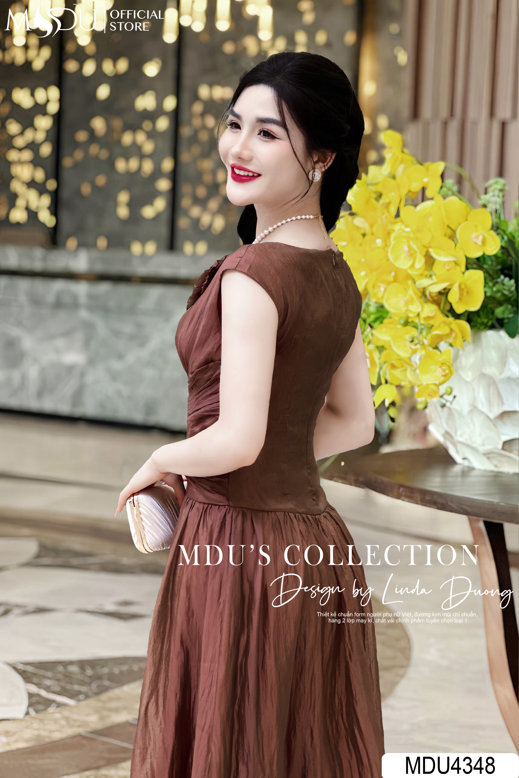 Váy Thiết Kế MDU4348 – Chất Diamond Tencel Cao Cấp, Màu Nâu Sang Trọng
