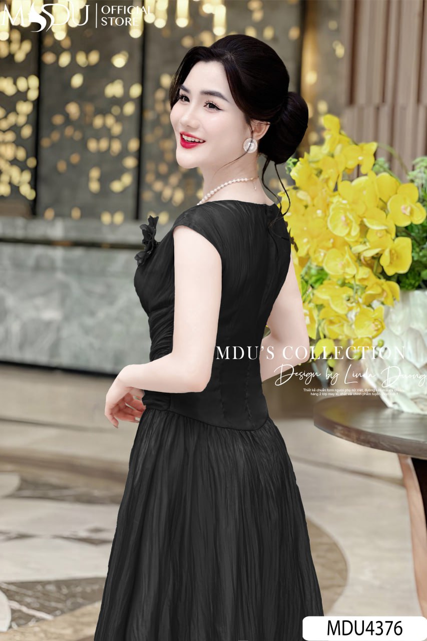 Chiếc váy MDU4376 gây ấn tượng với sắc đen huyền bí, dễ dàng phối hợp cùng phụ kiện ánh kim hoặc trang sức ngọc trai để tôn lên phong cách tinh tế và sang trọng. Thiết kế ôm nhẹ tôn lên vóc dáng, phù hợp với các dịp quan trọng.