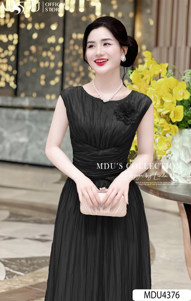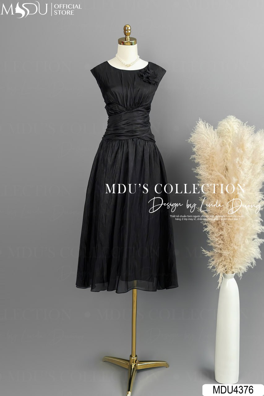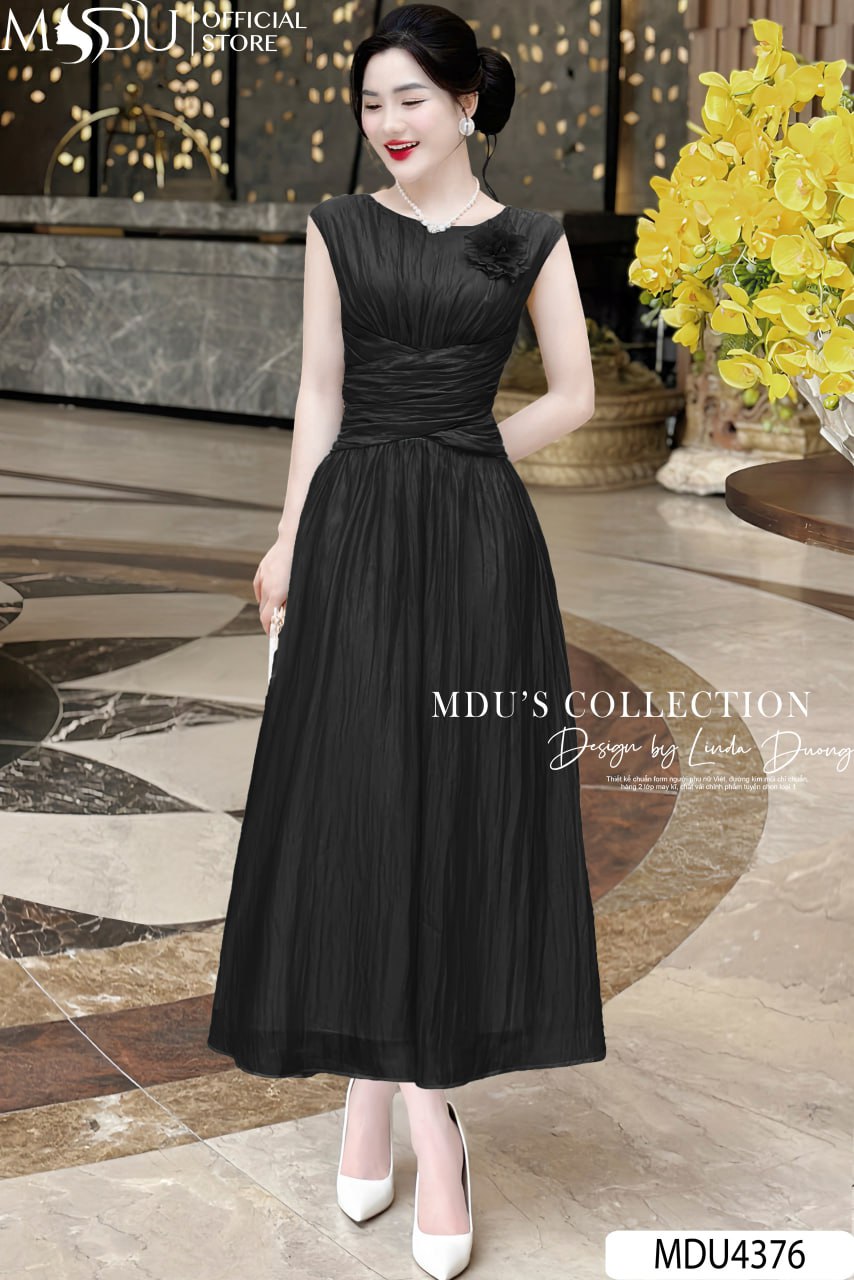 Váy Thiết Kế MDU4376 – Chất Liệu Tơ Diamond Tencel Cao Cấp, Màu Đen Sang Trọng Cho Phong Cách Thời Trang Tinh Tế