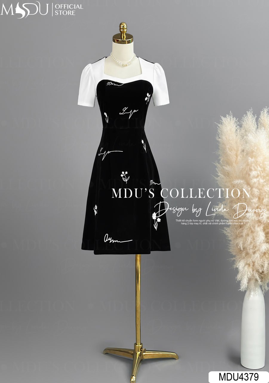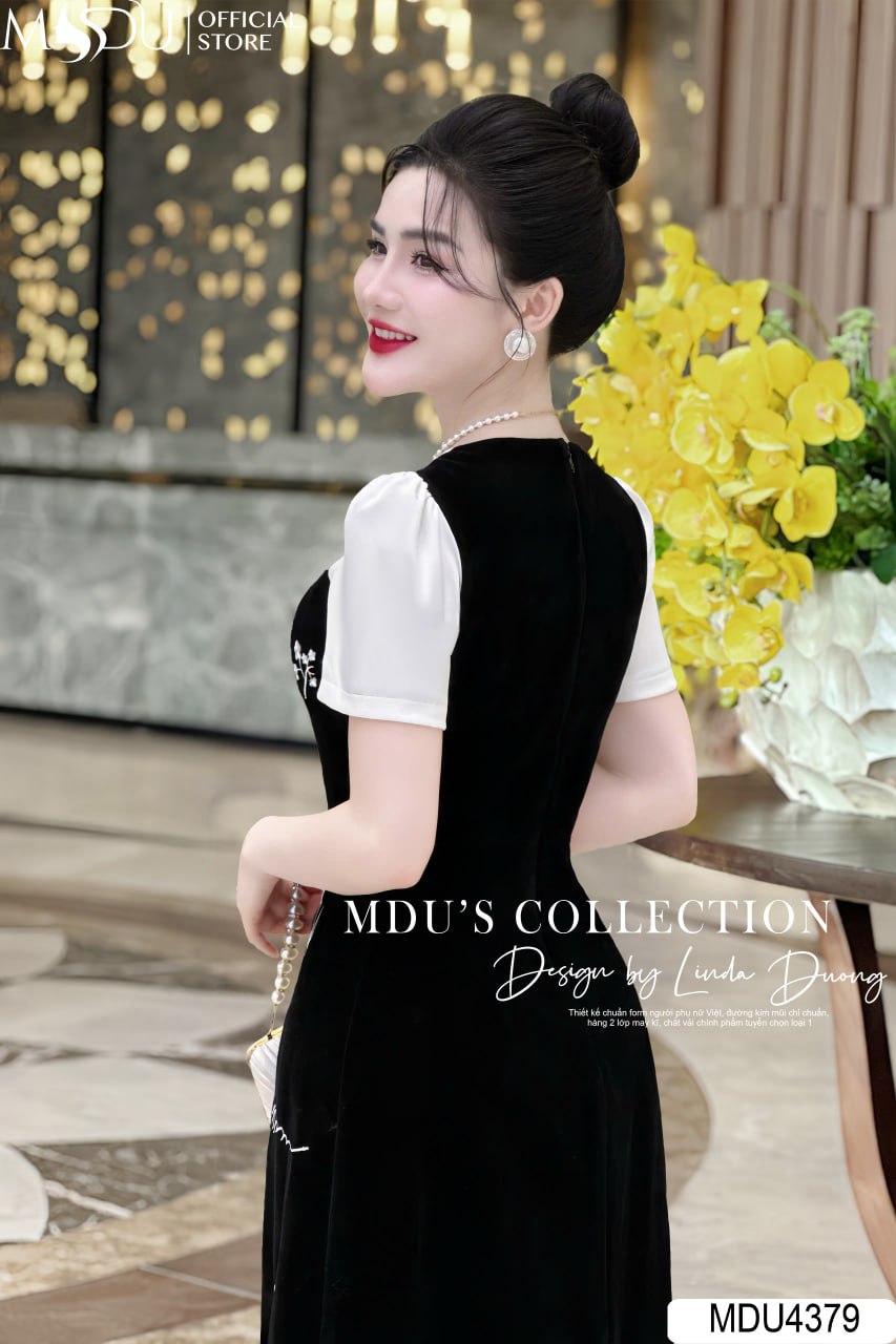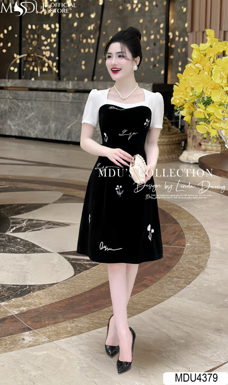 Váy Thiết Kế MDU4379 – Chất Nhung Hàn Phối Mango Ý, Màu Sắc Bắt Mắt Cho Phong Cách Thời Trang Sang Trọng