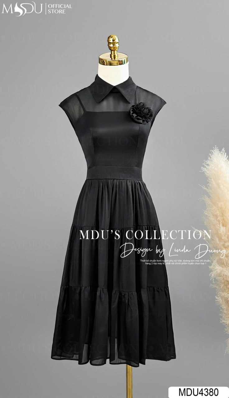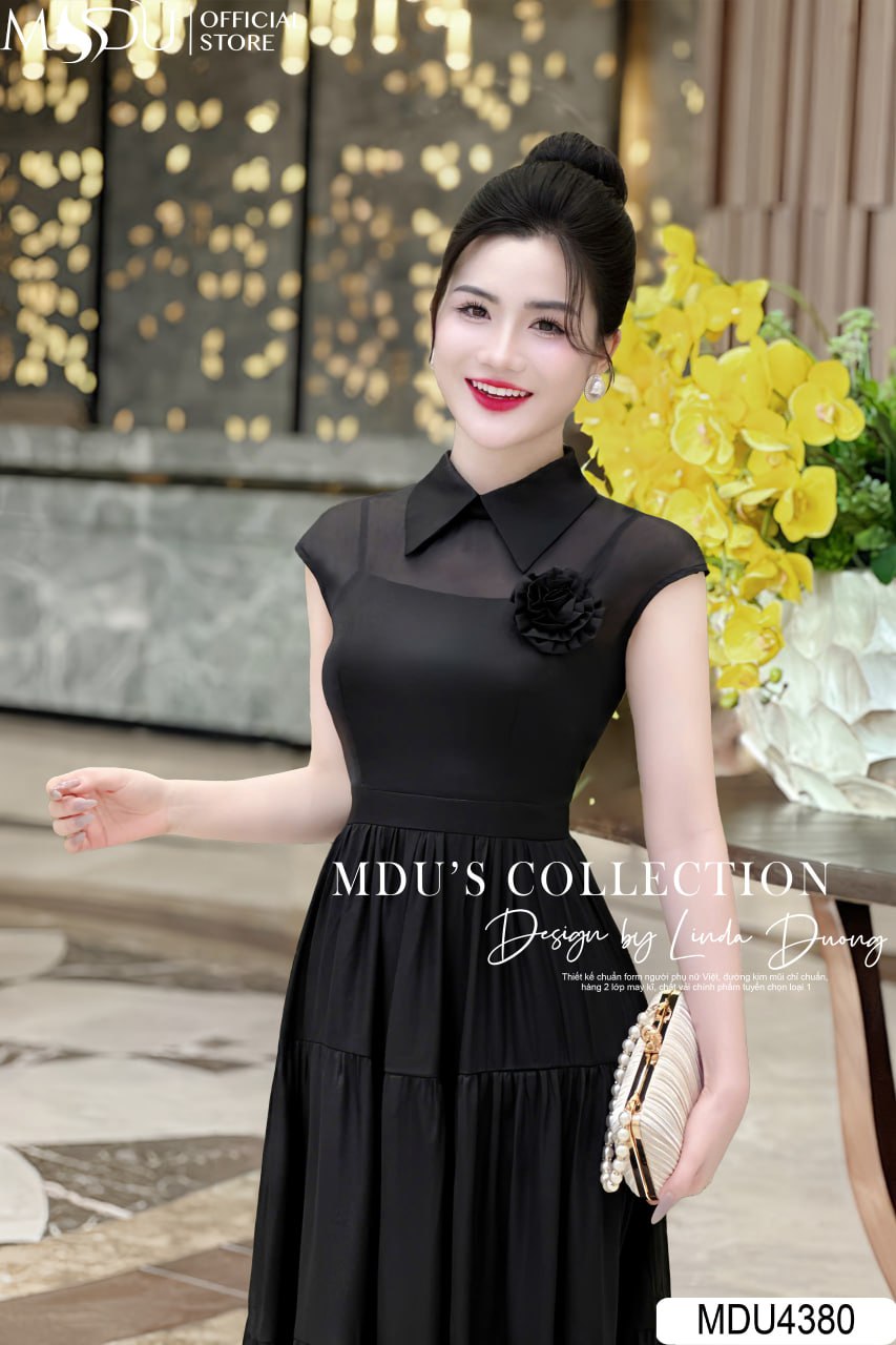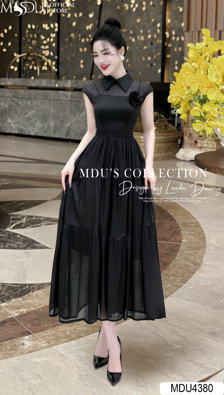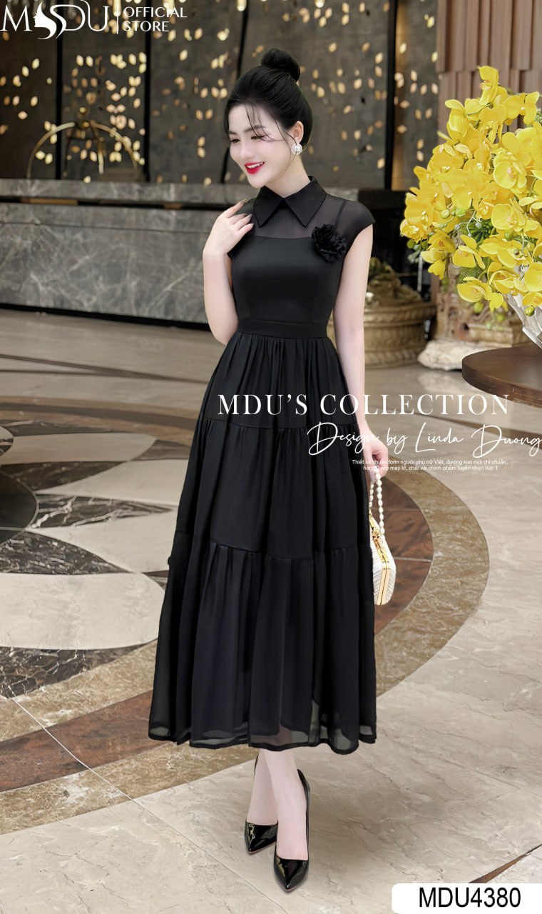 Váy Thiết Kế MDU4380 – Sự Kết Hợp Hoàn Hảo Giữa Màu Đen Thanh Lịch Và Chất Liệu Tơ Hàn Cao Cấp