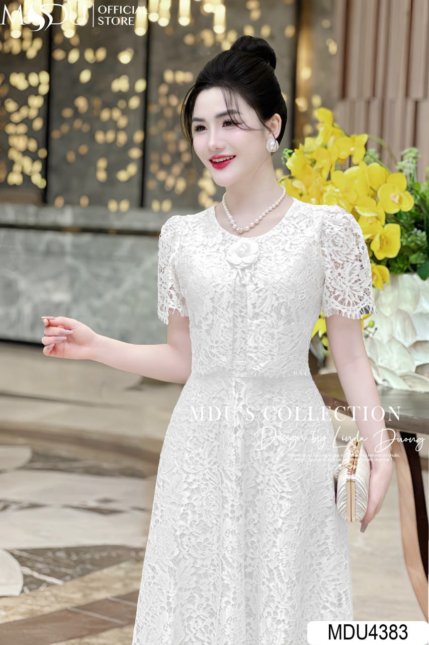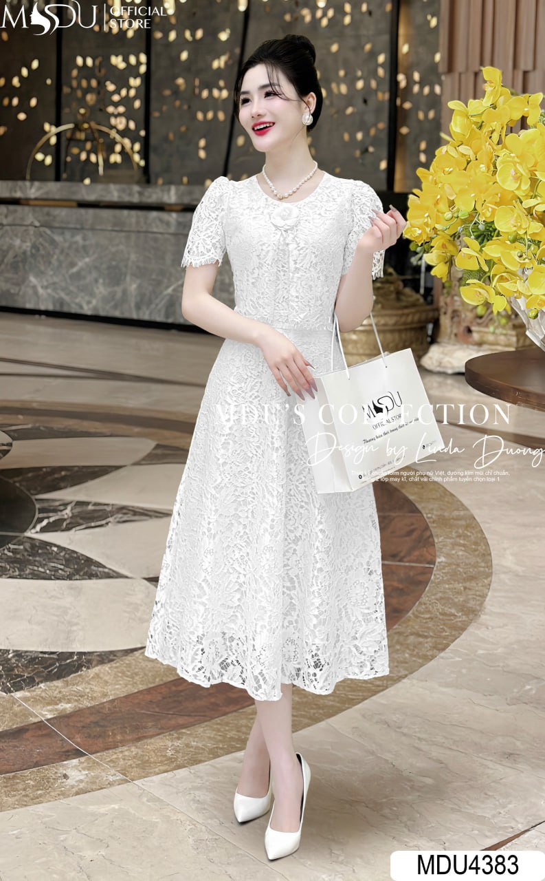 Váy Thiết Kế MDU4383 – Chất Liệu Ren Mềm Mại Cao Cấp, Màu Trắng Cho Phong Cách Thanh Lịch và Tinh Tế