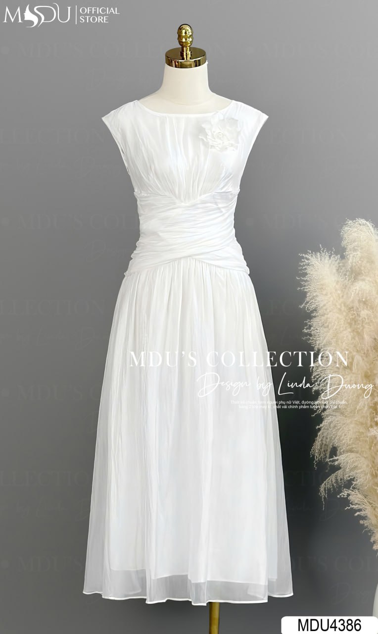 Váy Thiết Kế MDU4386 – Chất Liệu Tơ Diamond Tencel Cao Cấp, Sắc Trắng Thanh Lịch Cho Phong Cách Thời Trang Độc Đáo