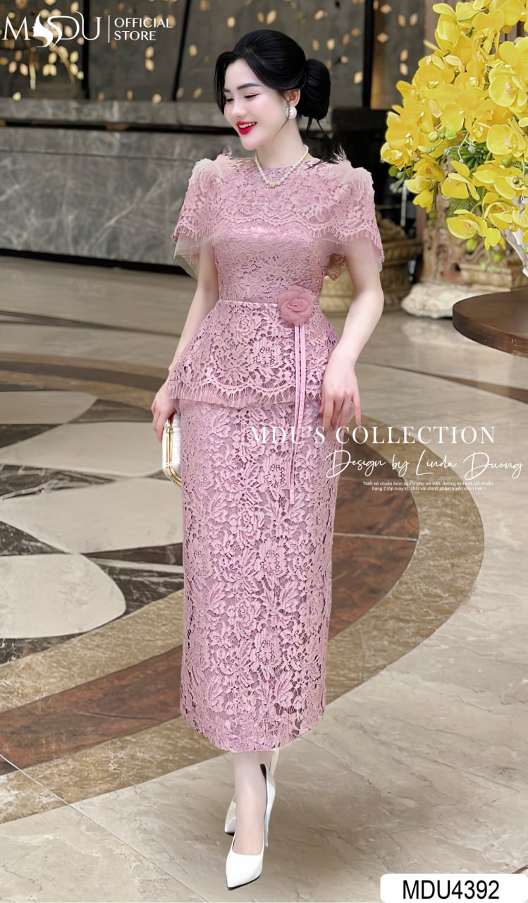 Váy Thiết Kế MDU4392 – Chất Liệu Ren Hàn Cao Cấp, Màu Hồng Nhạt Cho Phong Cách Thời Trang Nữ Tính Và Duyên Dáng
