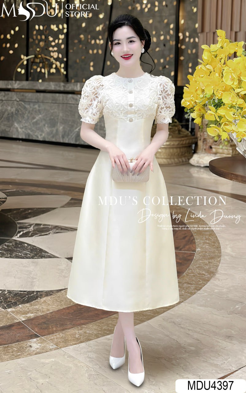 Váy Thiết Kế MDU4397 – Chất Tafta Phối Ren Cao Cấp