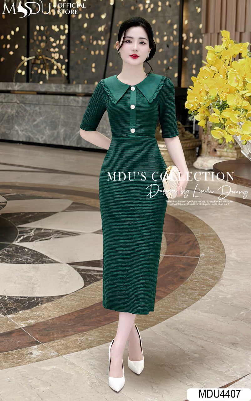 Sở hữu tông màu xanh lá dịu dàng, váy MDU4407 giúp người mặc tỏa sáng một cách tinh tế trong các buổi tiệc hoặc sự kiện trang trọng. Với dáng váy ôm vừa vặn, sắc xanh nhẹ nhàng giúp tôn lên vẻ đẹp tươi trẻ và thanh thoát của phái đẹp. Chiếc váy dễ dàng phối hợp với nhiều phụ kiện khác nhau, tạo nên phong cách thời trang duyên dáng và cuốn hút.