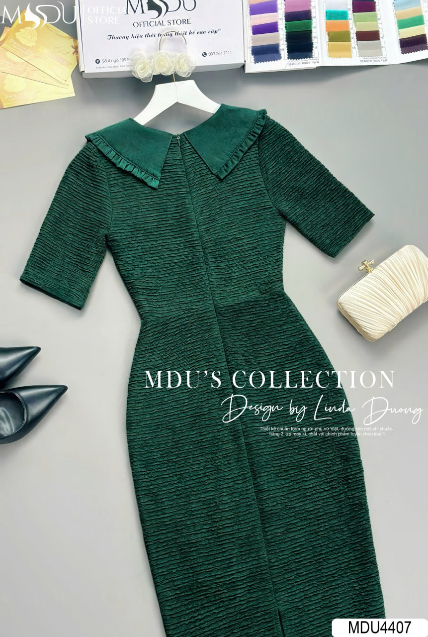 Váy Thiết Kế MDU4407 – Sự Kết Hợp Tinh Tế Giữa Màu Xanh Lá Nhẹ Nhàng Và Chất Liệu Visco Nhật Cao Cấp Mềm Mại