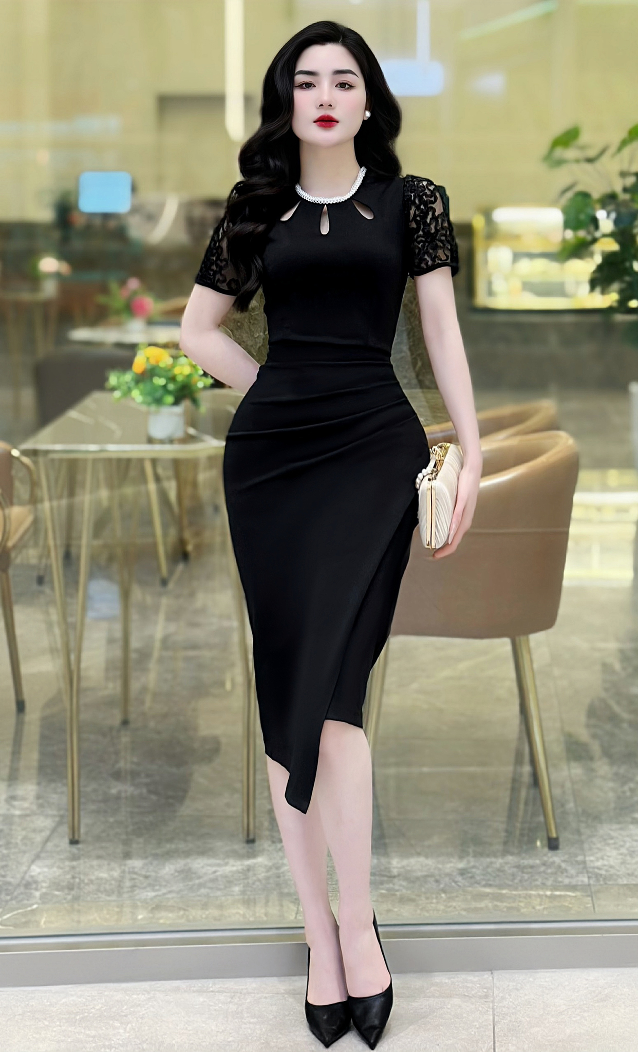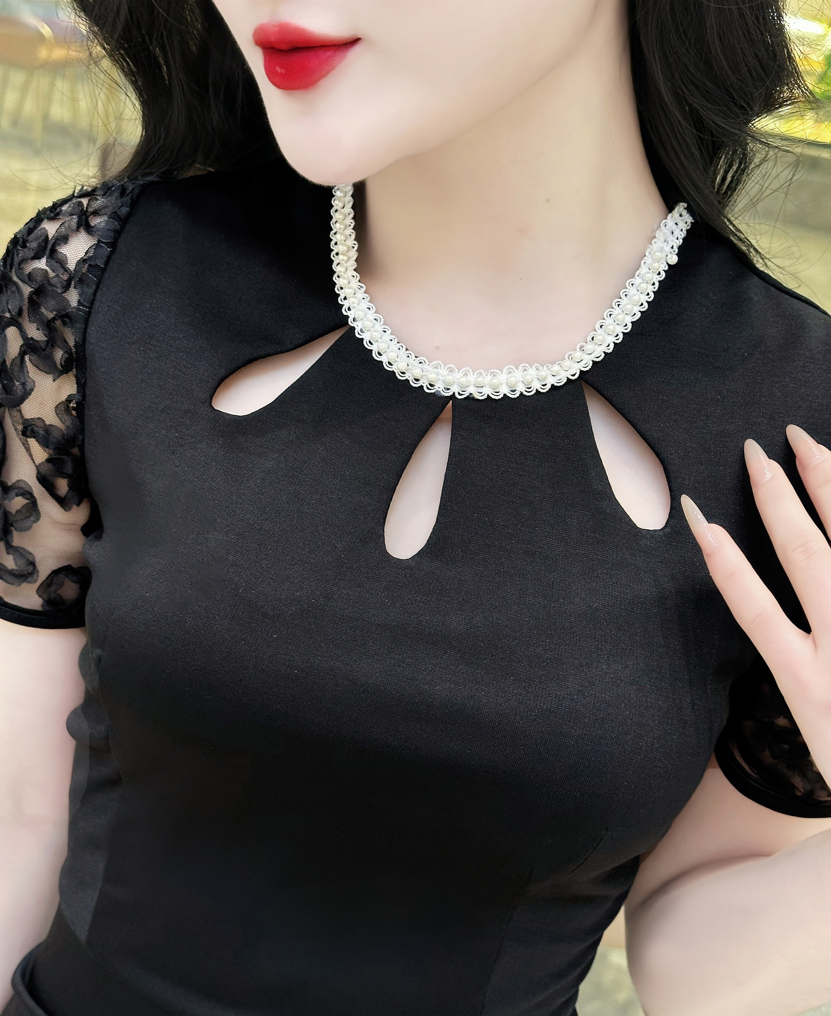 MDU4409 nổi bật với thiết kế cổ điệu đính đá sang trọng và tay ren pha họa tiết tinh tế. Những chi tiết này không chỉ tạo điểm nhấn nổi bật mà còn mang lại vẻ đẹp thanh lịch và quyến rũ cho người mặc. Chiếc váy này không chỉ thích hợp cho các buổi tiệc mà còn phù hợp khi đi chơi, đảm bảo tính ứng dụng cao và không bao giờ lỗi mốt.