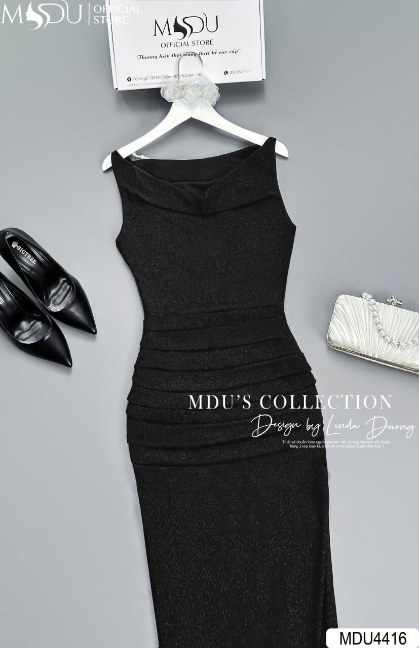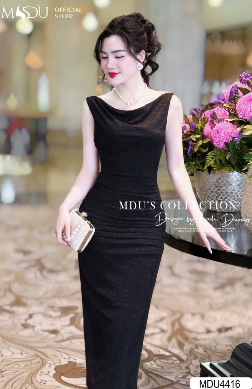 Váy Thiết Kế MDU4416 – Chất Nhũ Kim Sa Cao Cấp, Màu Đen Sang Trọng