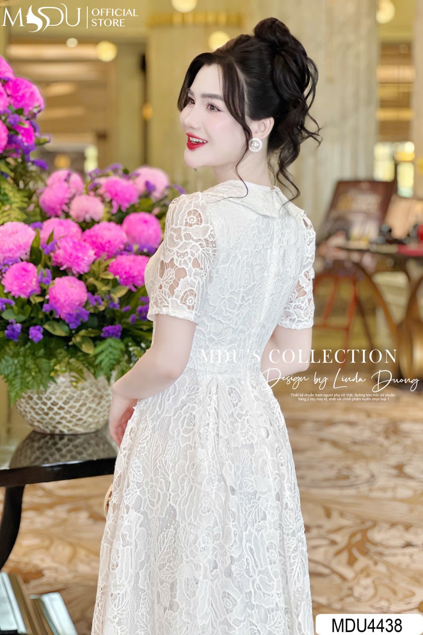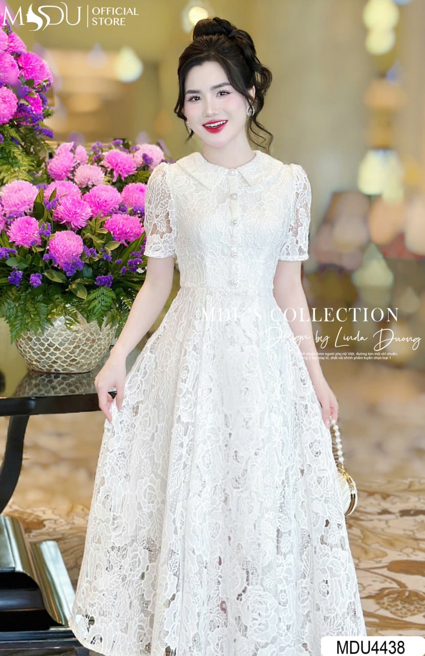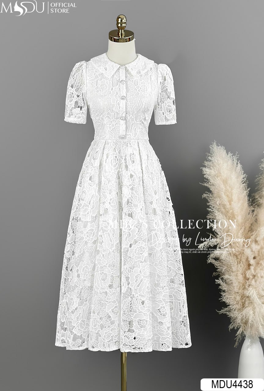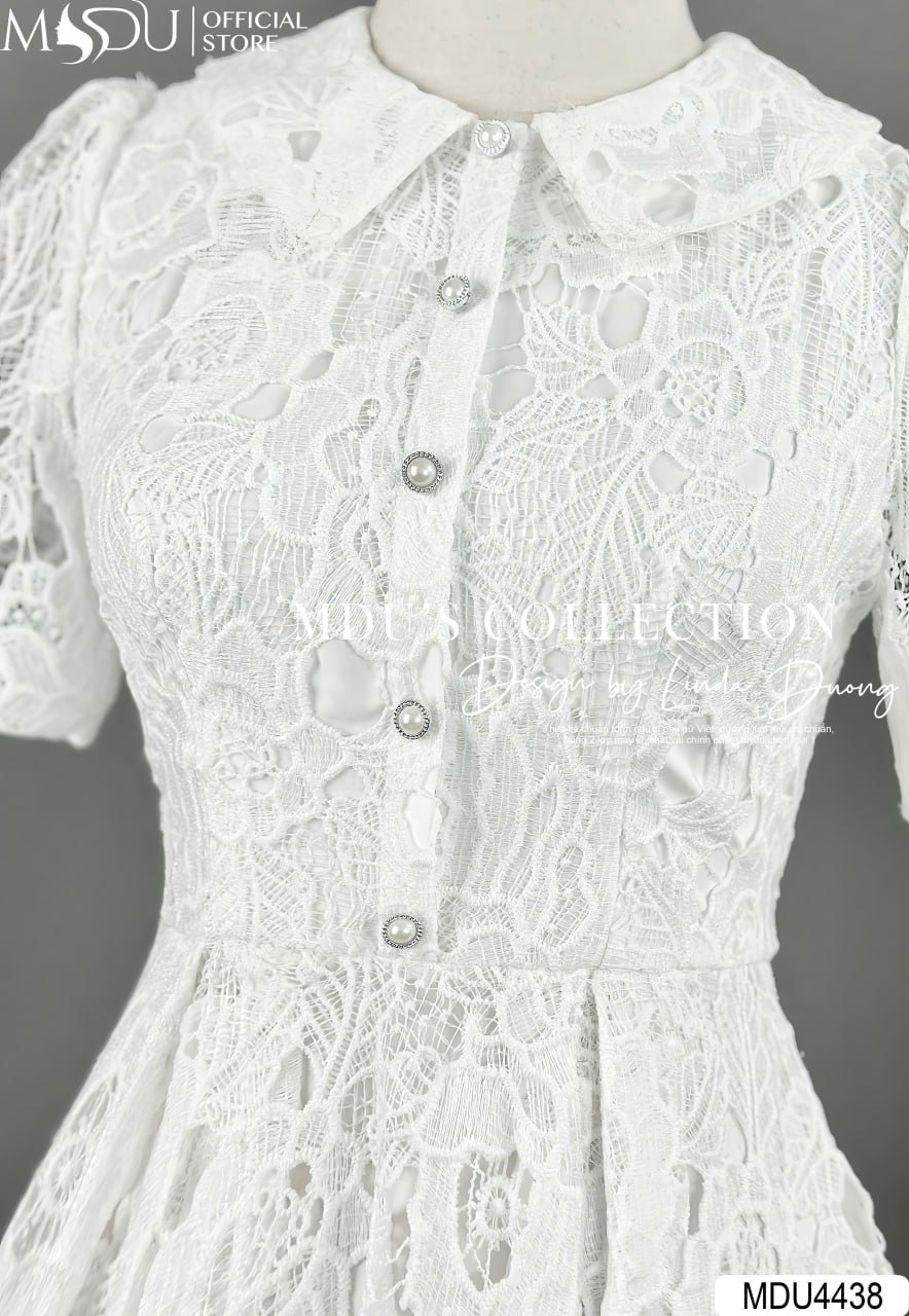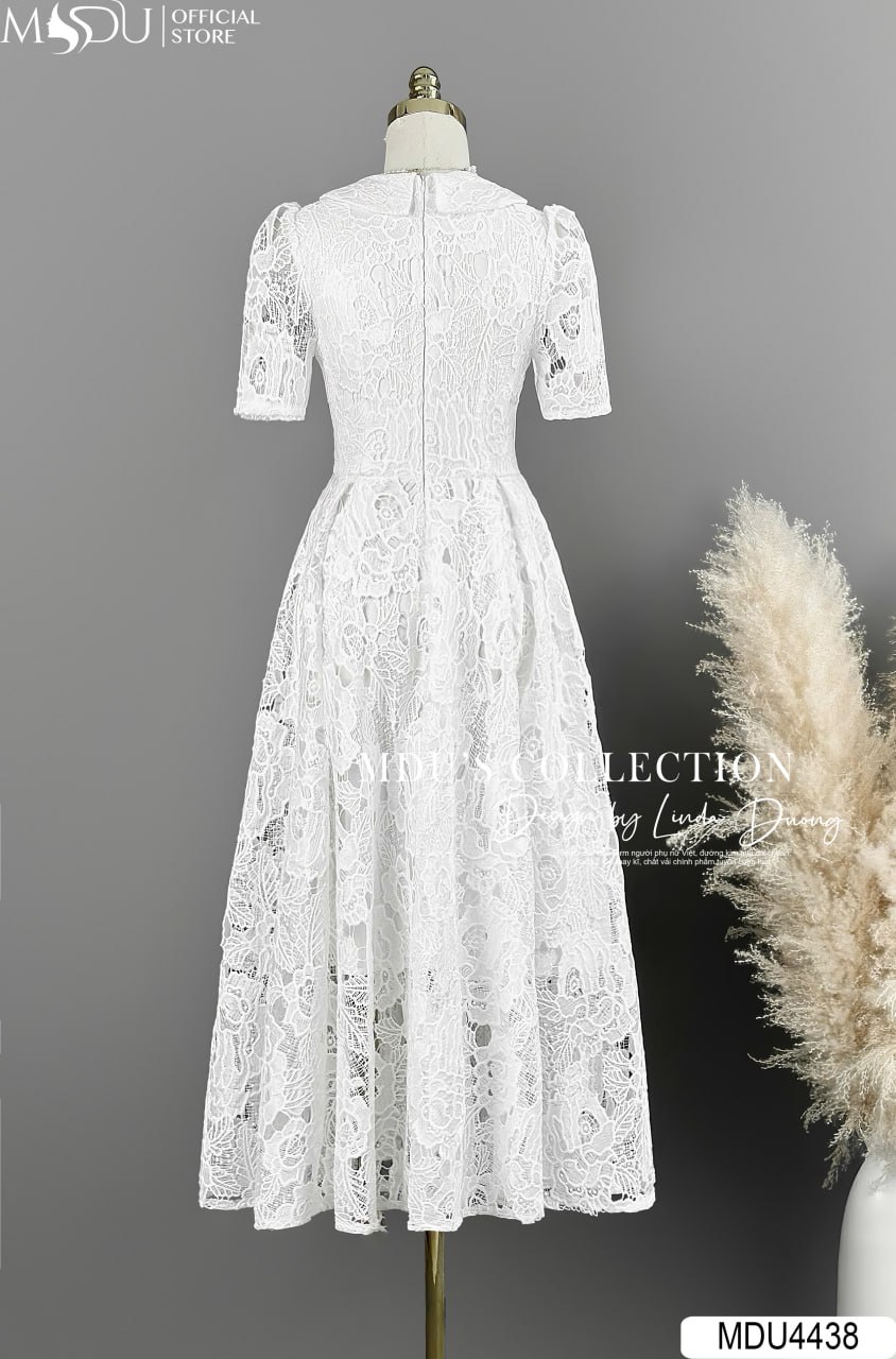 Váy Thiết Kế MDU4438 – Chất Ren Hàn Cao Cấp, Màu Trắng Tinh Khôi
