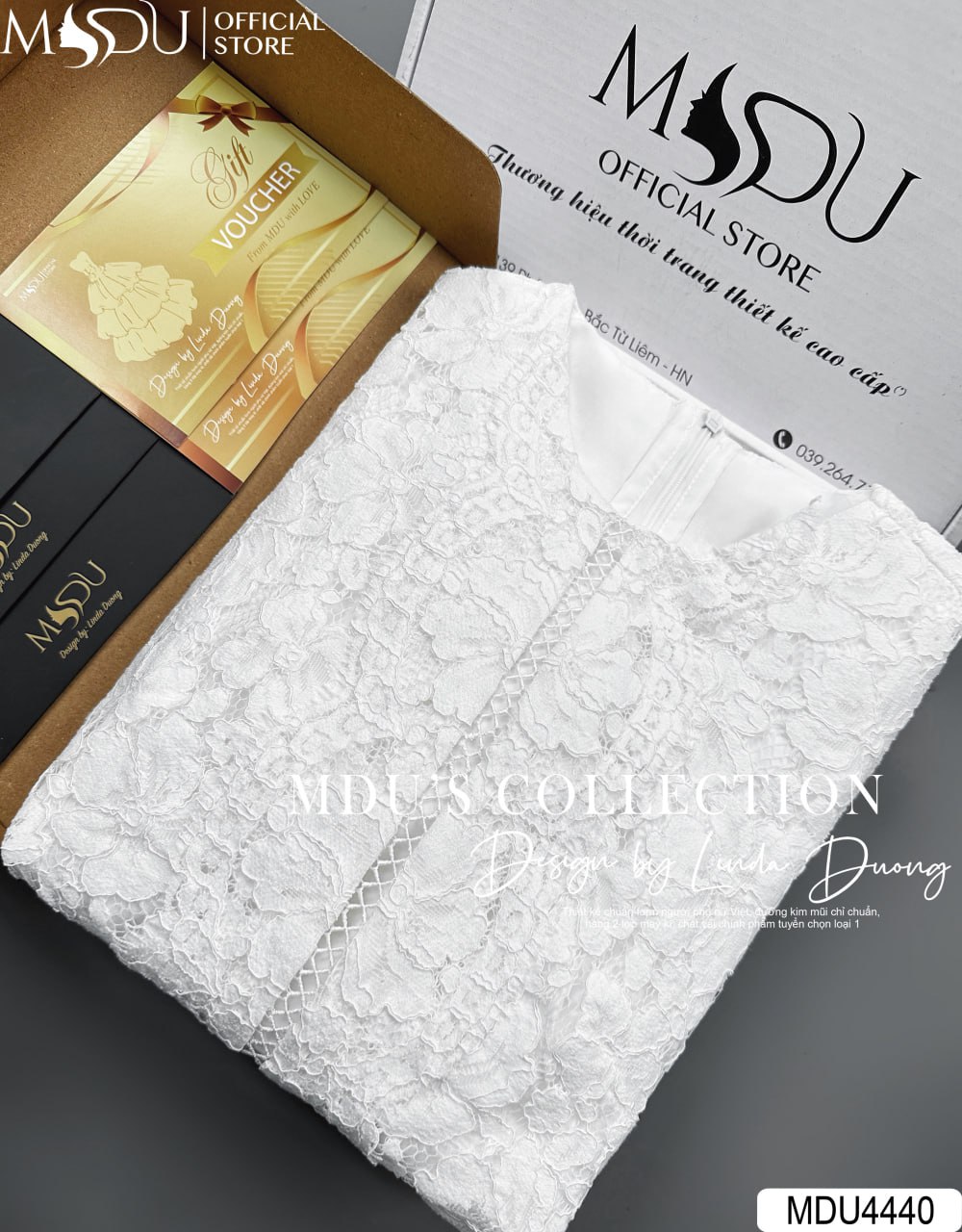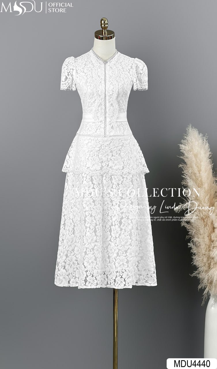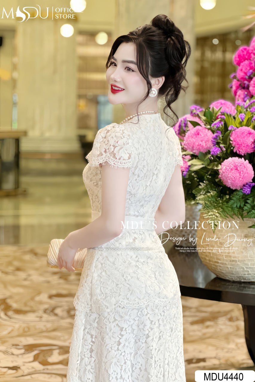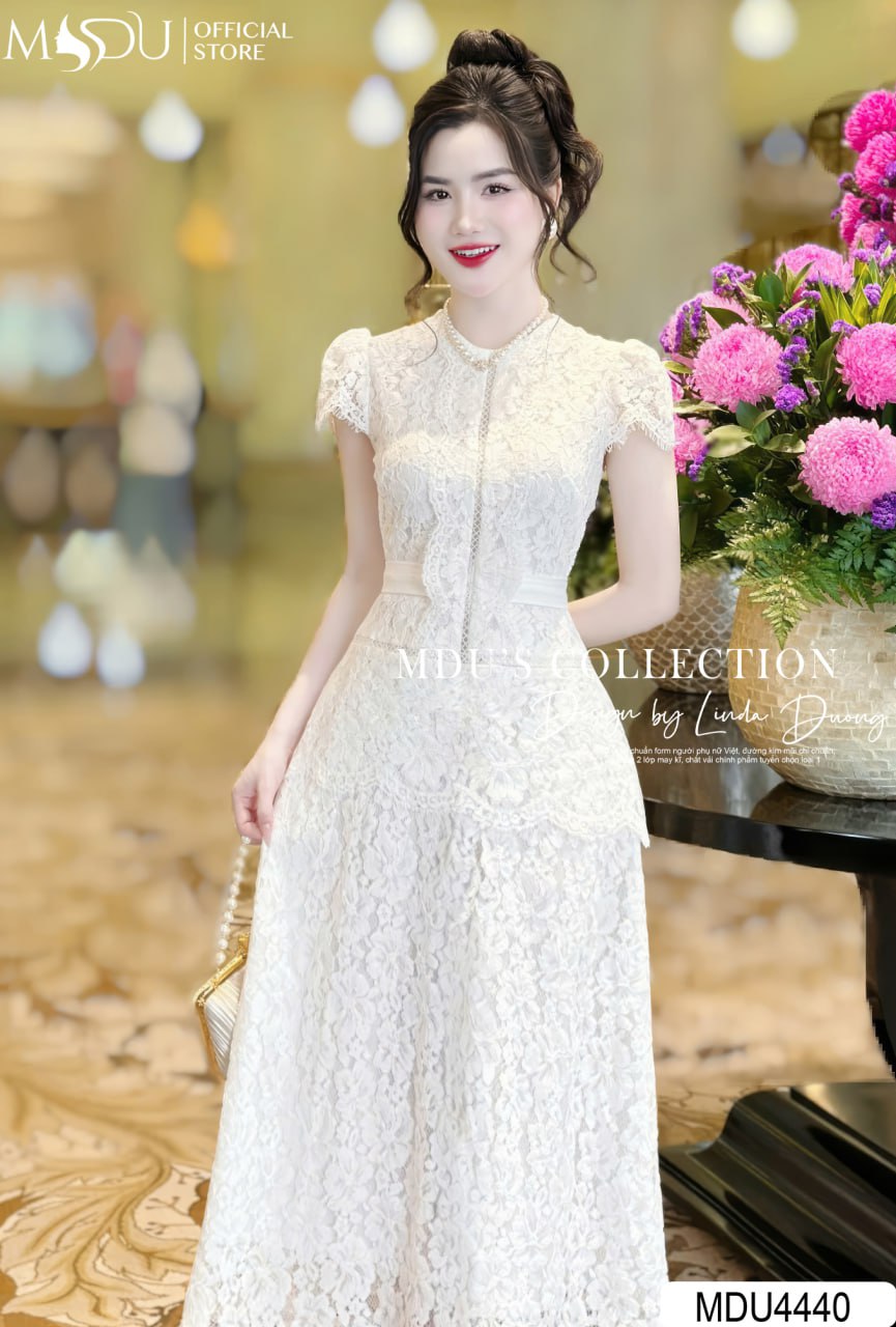 Với sự kết hợp hài hòa giữa sắc trắng thanh khiết và chất liệu ren thêu hoa cao cấp, MDU4440 mang lại vẻ đẹp đầy nữ tính và sang trọng. Chiếc váy dễ dàng kết hợp với các phụ kiện trang nhã, giúp chị yêu thêm phần duyên dáng và nổi bật trong những buổi gặp gỡ quan trọng và các dịp đặc biệt.