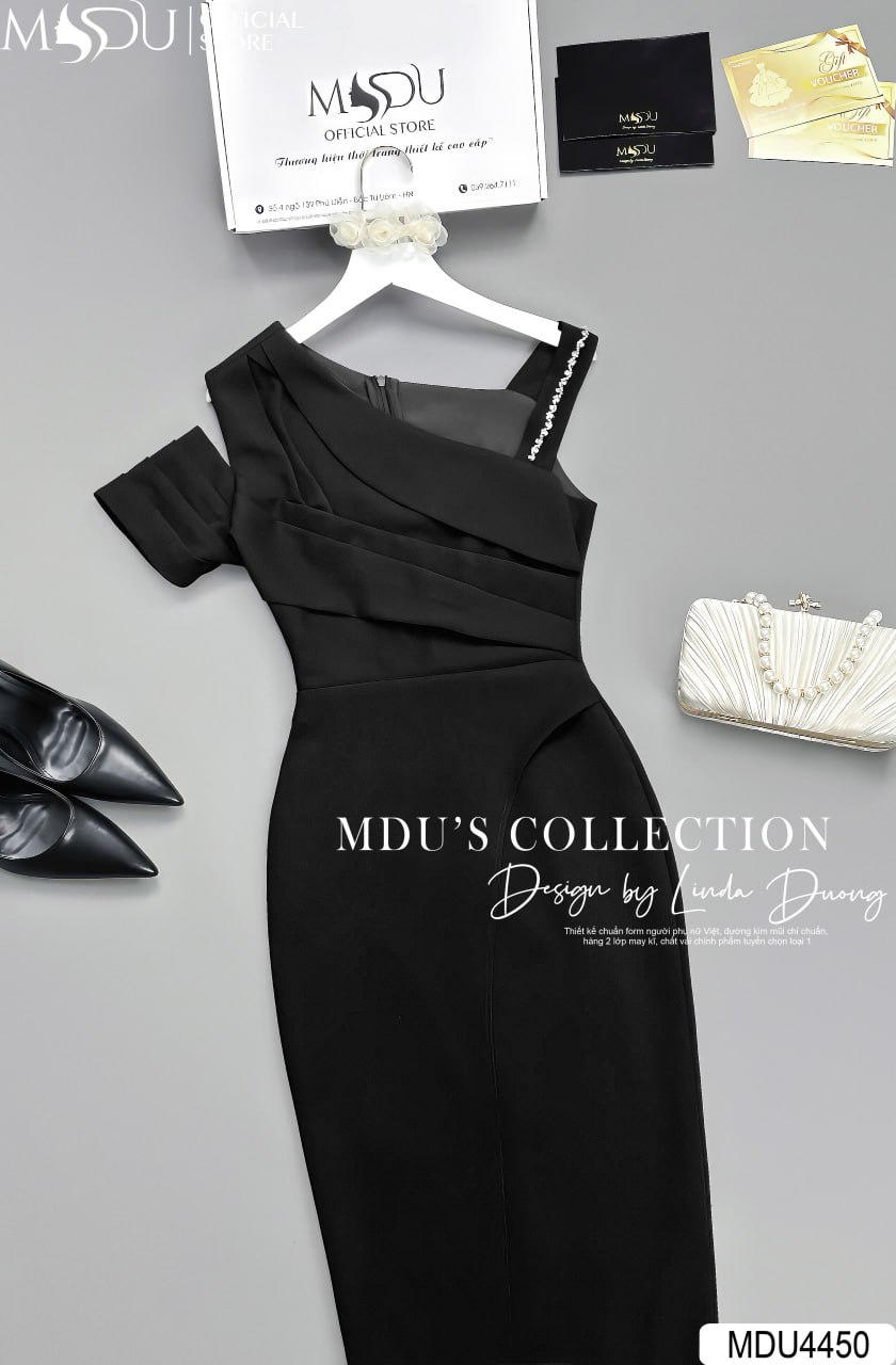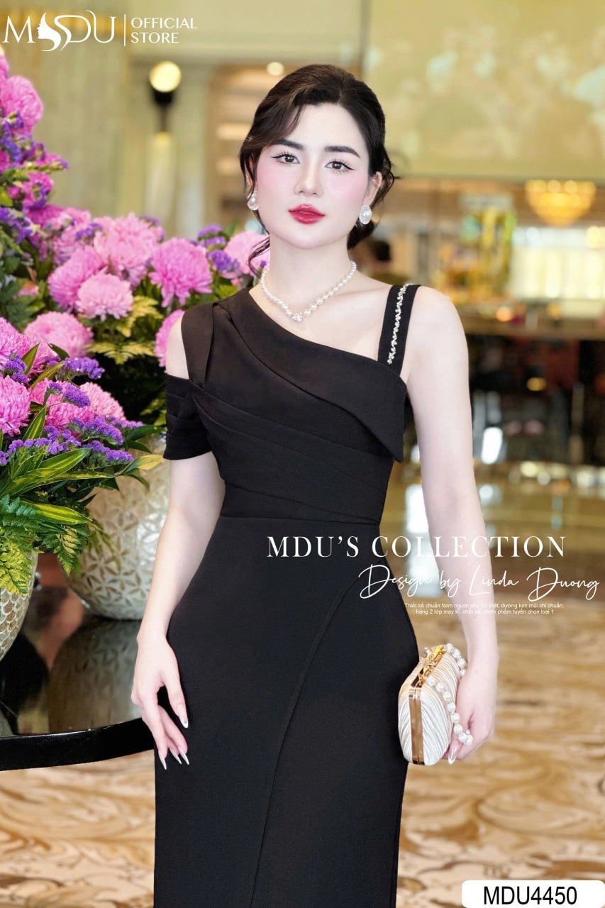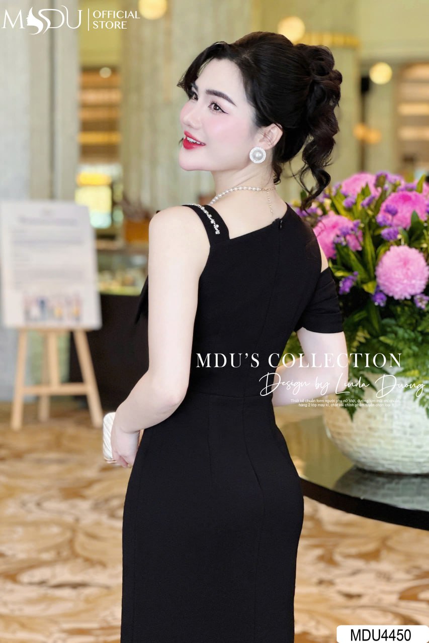 Với tông màu đen cổ điển, váy MDU4450 tỏa ra vẻ đẹp huyền bí và cuốn hút. Phần thiết kế trễ vai quyến rũ kết hợp dáng ôm sát giúp tôn lên đường cong mềm mại, tạo phong cách sang trọng và hiện đại. Sản phẩm này là lựa chọn hoàn hảo cho những buổi tiệc, sự kiện quan trọng hay hẹn hò lãng mạn.