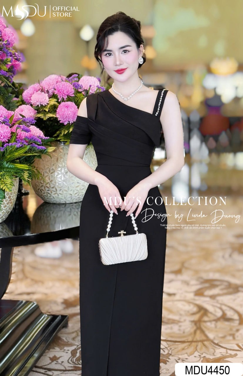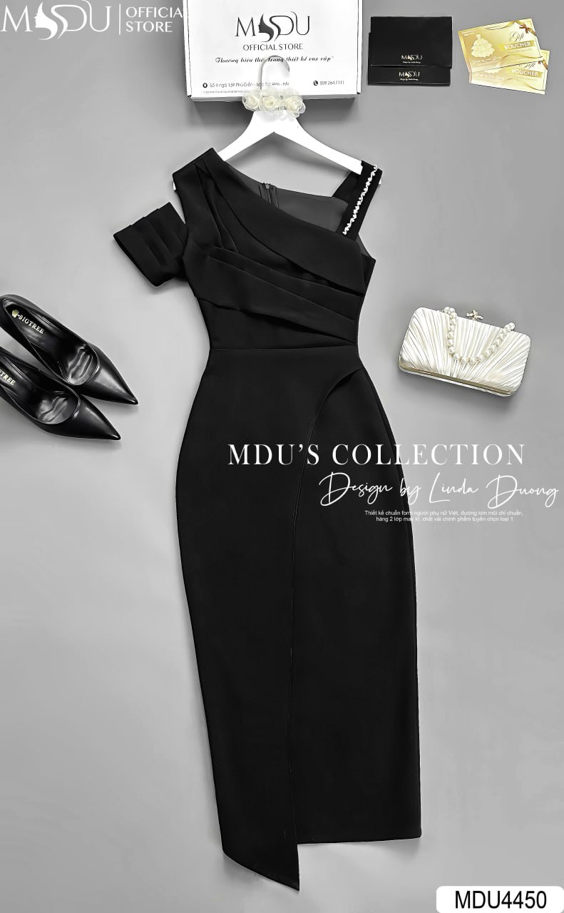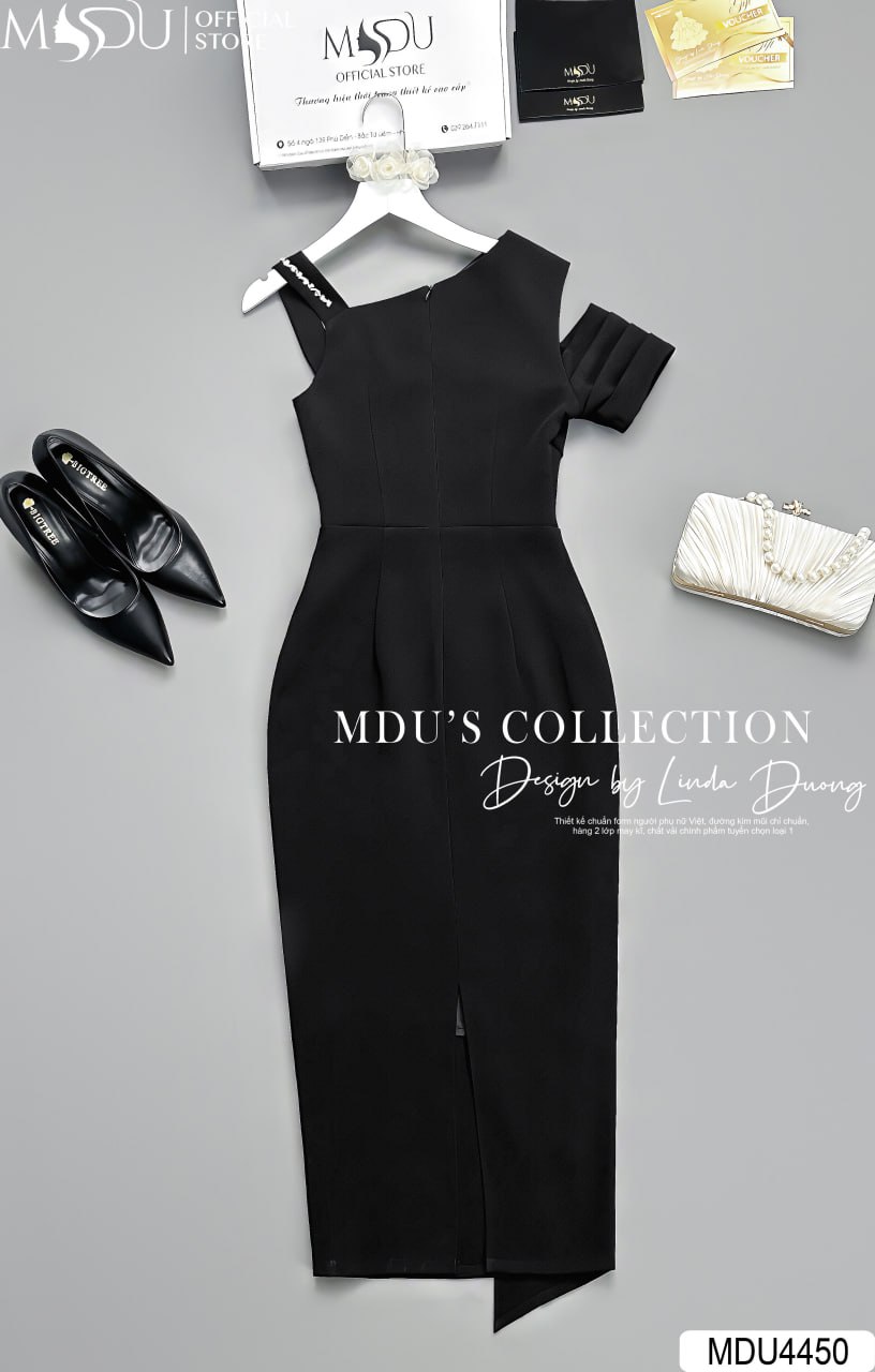 Với tông màu đen cổ điển, váy MDU4450 tỏa ra vẻ đẹp huyền bí và cuốn hút. Phần thiết kế trễ vai quyến rũ kết hợp dáng ôm sát giúp tôn lên đường cong mềm mại, tạo phong cách sang trọng và hiện đại. Sản phẩm này là lựa chọn hoàn hảo cho những buổi tiệc, sự kiện quan trọng hay hẹn hò lãng mạn.