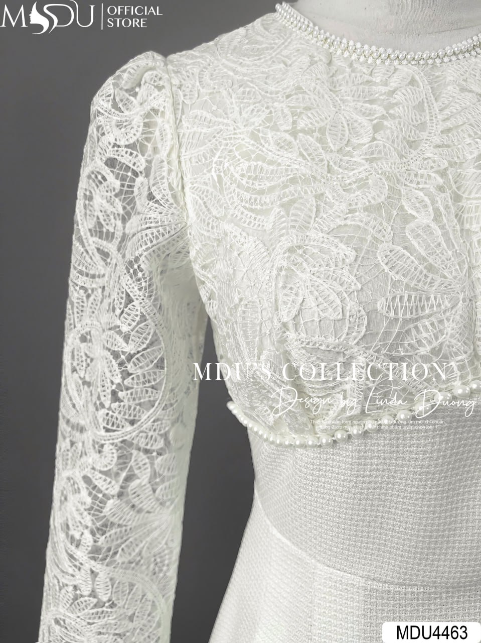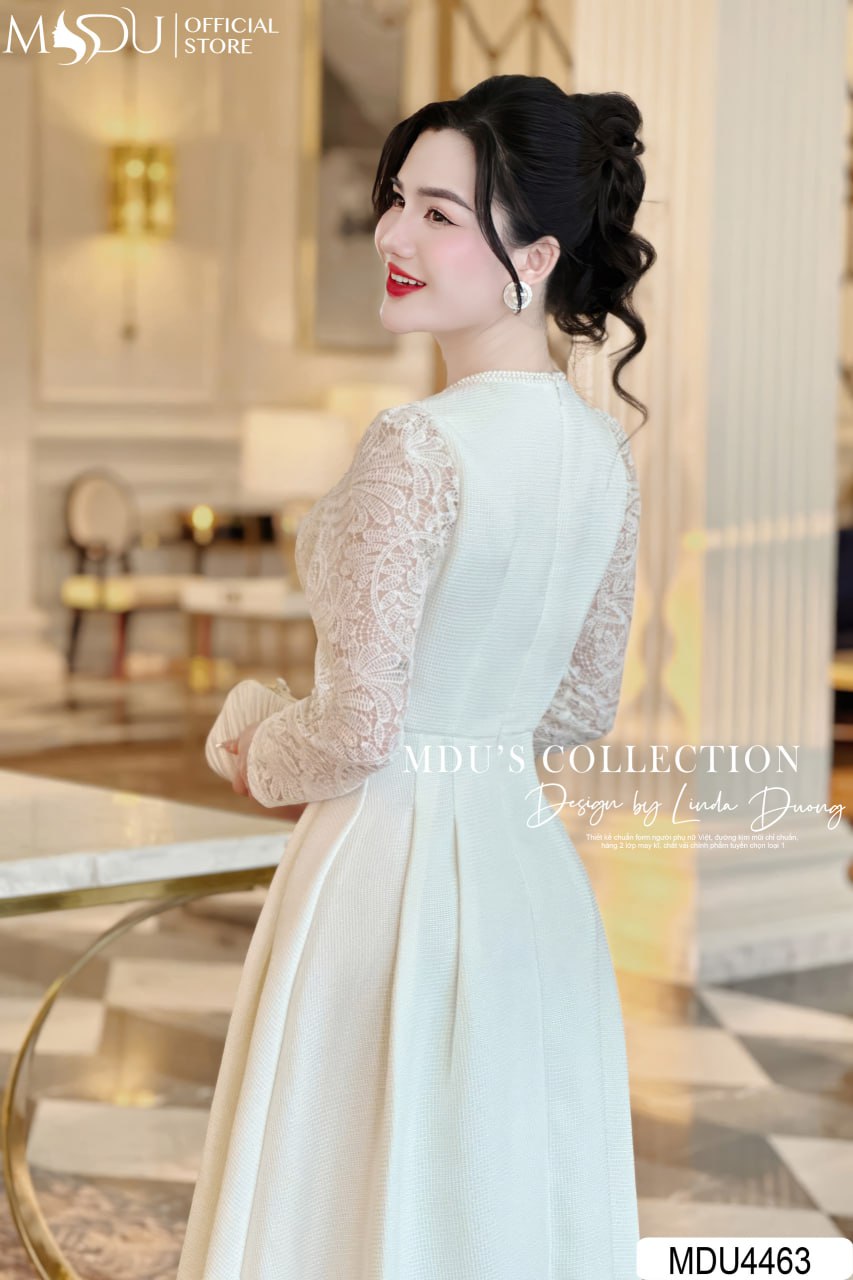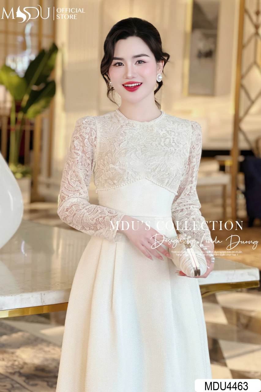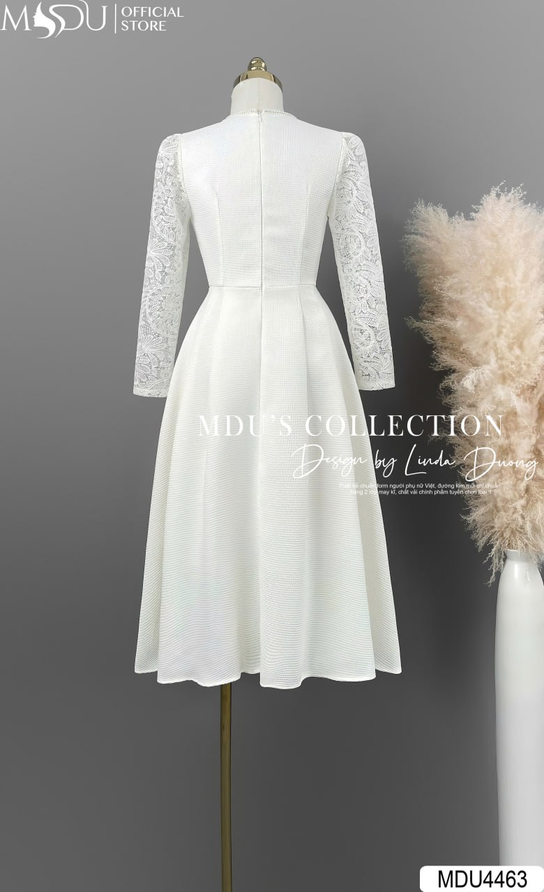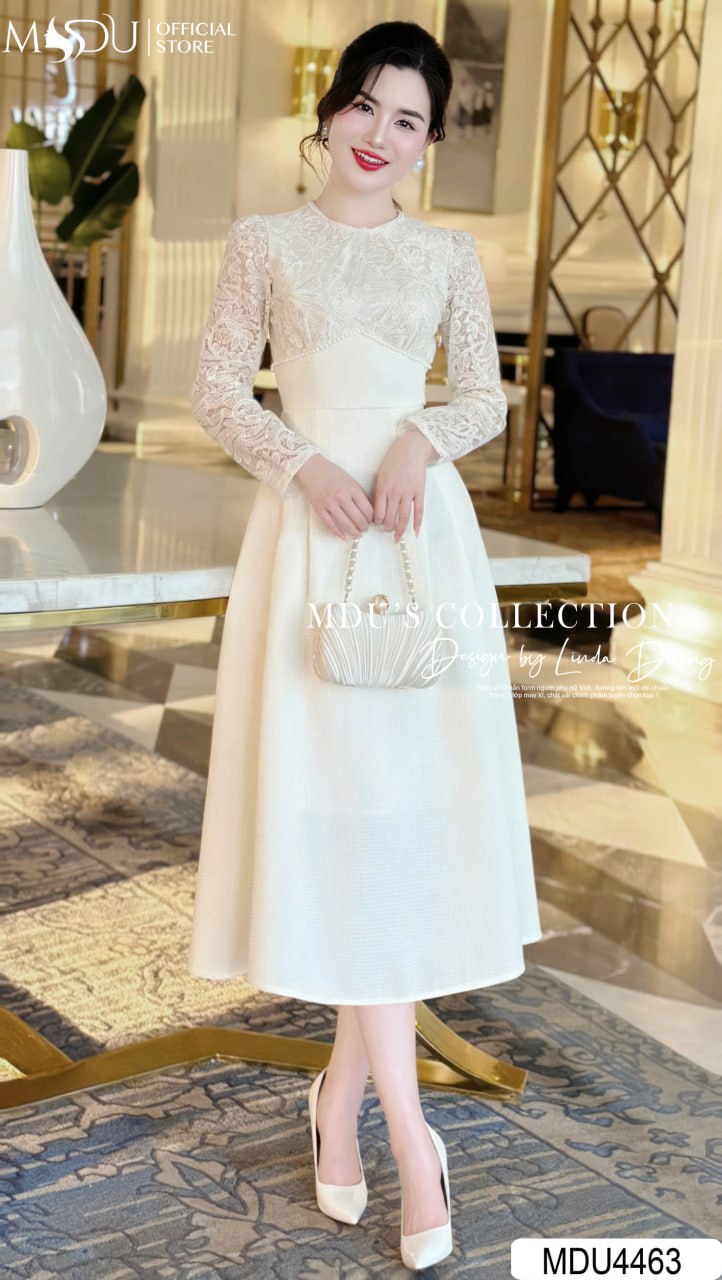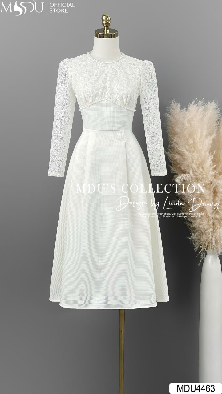MDU4463 được làm từ chất ren phối Text Nhật cao cấp, thiết kế tỉ mỉ và sang trọng tạo nên vẻ đẹp tinh tế. Chiếc váy gồm hai lớp với lớp lót hút mồ hôi, mang lại cảm giác dễ chịu khi mặc. Đường may khéo léo và an toàn cho da, giúp bạn tự tin tỏa sáng trong mọi khoảnh khắc.