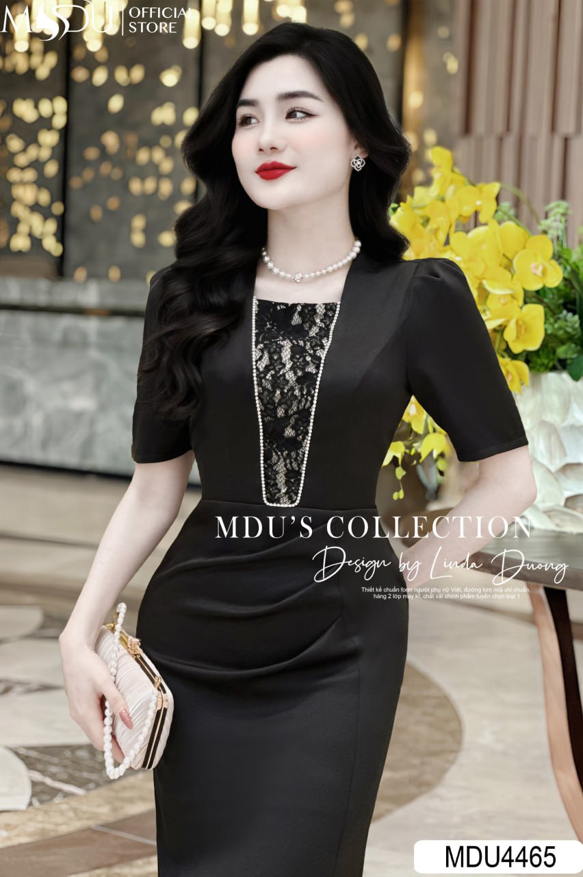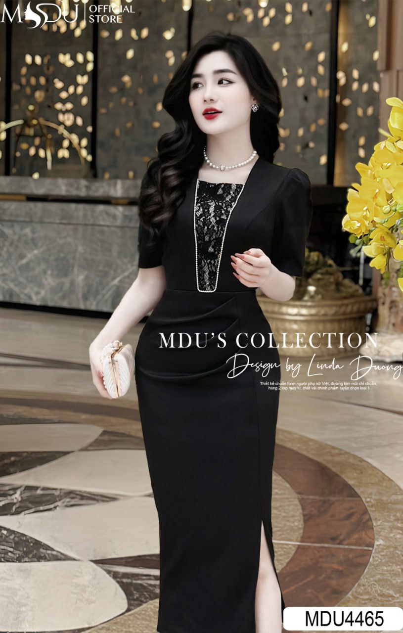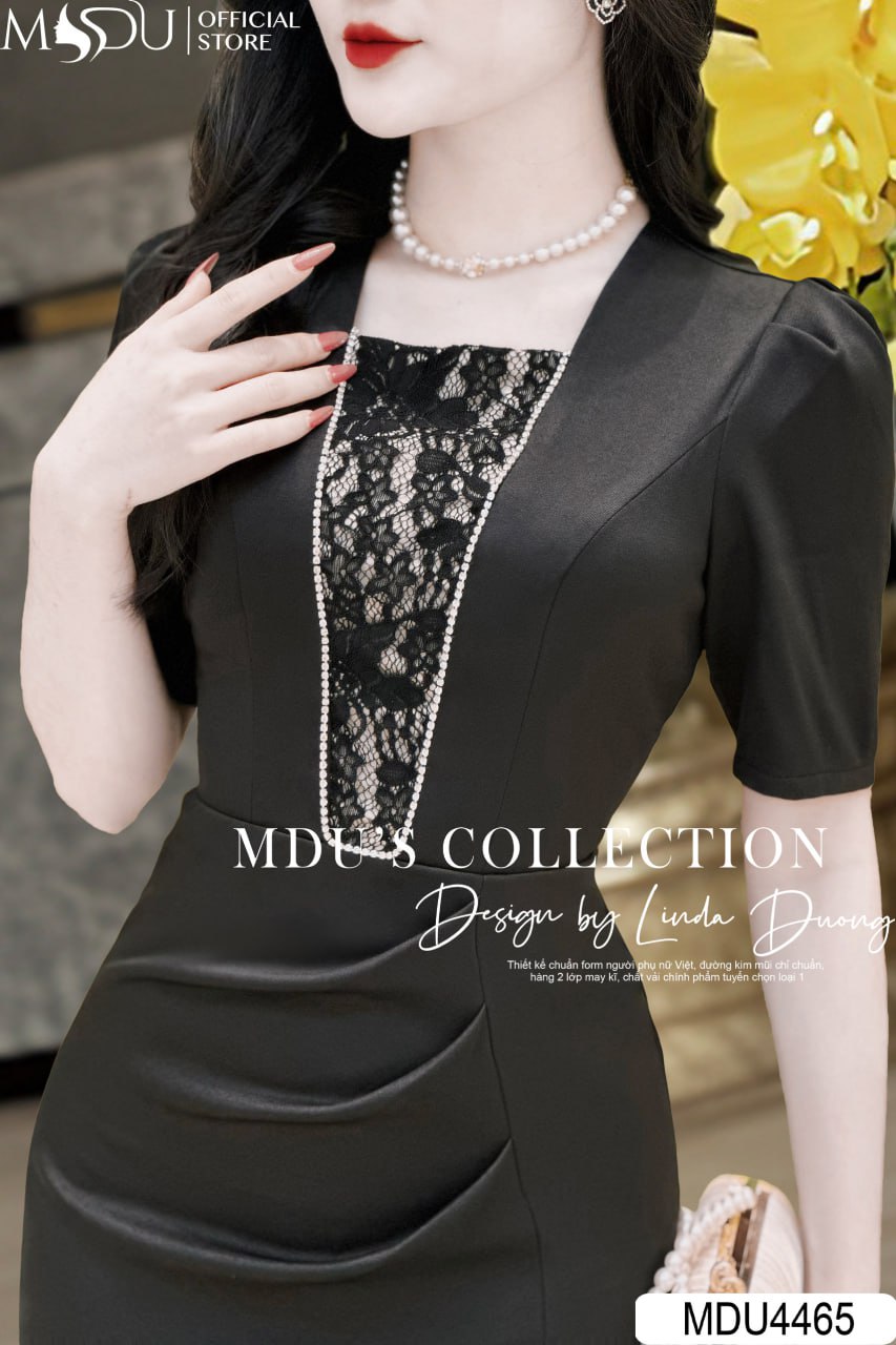 Với sự kết hợp hoàn hảo giữa sắc đen bí ẩn và chất liệu Chevron Hàn phối ren, MDU4465 mang lại nét đẹp quyến rũ, dễ dàng phối hợp cùng các phụ kiện sang trọng. Chiếc váy mang đến phong cách độc đáo và đầy nữ tính, phù hợp cho những buổi gặp gỡ trang trọng và dịp đặc biệt.
